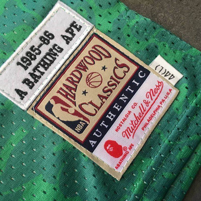 Сотрудничество BAPE® x Mitchell & Ness включает джерси команды Селтикс. Голова APE и прозвище команды спереди, номер 93 и бренд на спине.