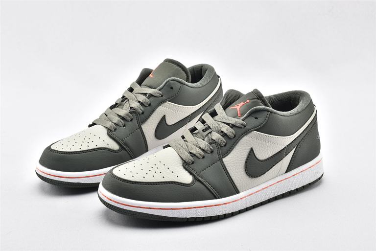 Кроссовки Air Jordan 1 Low Military Green демонстрируют классический силуэт, кожаный верх которых выполнен в светло и темно-сером цвете с акцентом на серый Nike Swoosh. Модель Jordan 1 Low дополняют малиновый символом Jumpman на нейлоновом язычке и вышитый логотип Jordan Wings на пяточной части. Перфорация в носочной части кроссовок обеспечивает лучшую воздухопроницаемость. Мидсоль с технологией Air и серая подошва с протектором завершают дизайн и обеспечивают улучшенную амортизацию.- Цвета: Military Green/White/Black