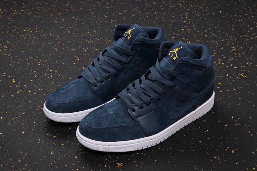 Air Jordan 1 Mid становится монохромным с выпуском в феврале 2017 года. Верх полностью выполнен в цвете Armory Navy, с замшевой основой, дополненной замшевым логотипом в тон, а также кожаными накладками на передней части стопы, пятке и воротнике. Контрастные акценты Electrolime появляются на язычке и логотипе Jumpman на стельке. Мидсоль и подошва выполнены в белом цвете. Ознакомьтесь с подробными фотографиями и закажите эту расцветку Air Jordan 1 Mid Armory Navy в розничных магазинах или в сервисе Slamdunk.- Цвета: Armory Navy/White-Electrolime