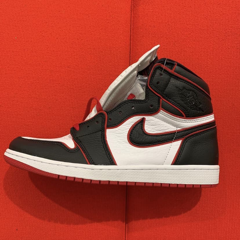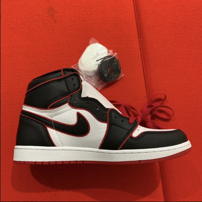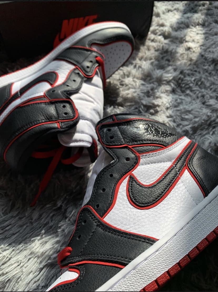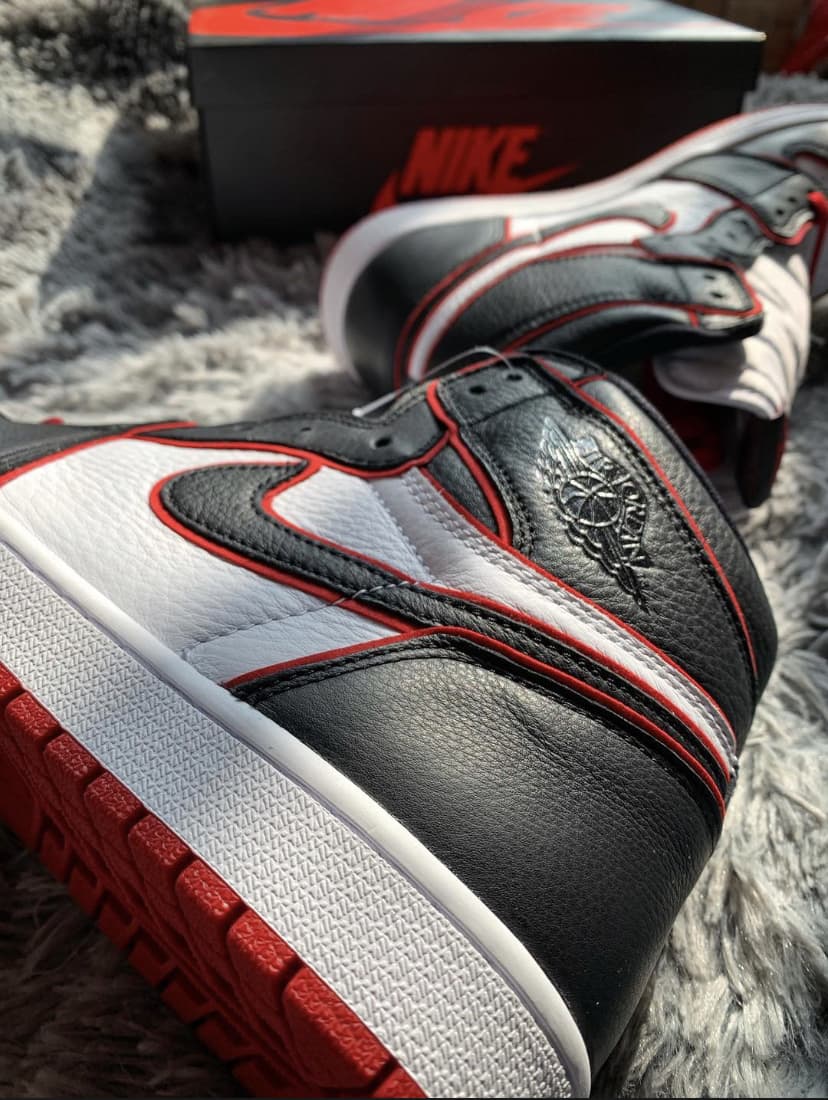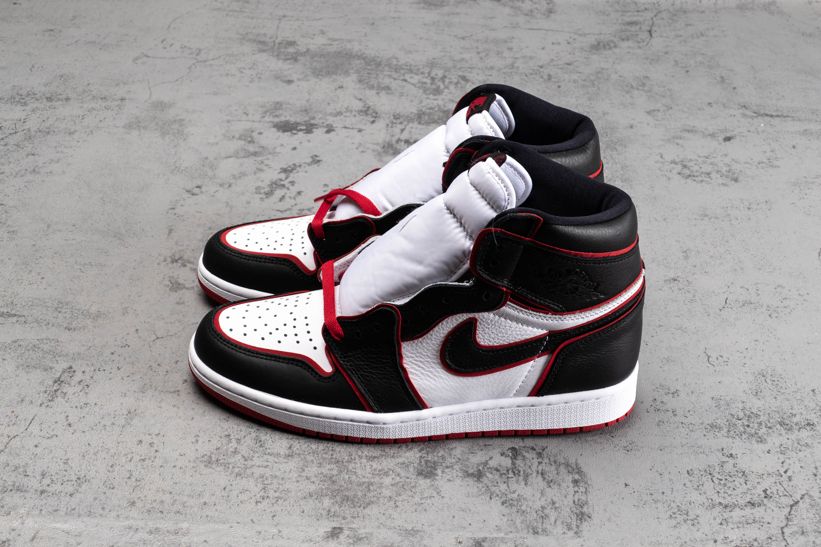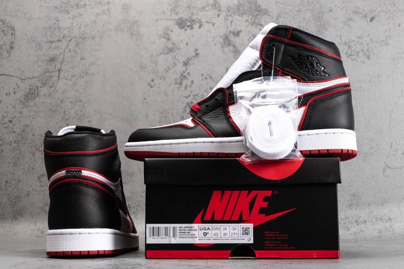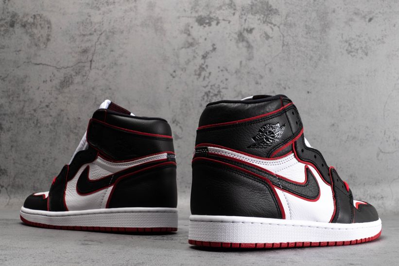 Эта модель чёрно-красного цвета отдаёт дань уважения Чикагским быкам. Верх этой расцветки Jordan 1 High Bloodline оснащен белой кожаной частью с черными накладками и красной отделкой, которая сочетается с кружевами и подошвой. Надписи «Nike Air» и надпись «Who Said Man Was Not Meant To Fly» на доп-х шнурках дополняют дизайн. Эти кроссовки выпущены в ноябре 2019 года и продавались в розницу от 160 долларов. Ознакомьтесь с подробными фотографиями и закажите эту расцветку Air Jordan 1 Retro High OG Bloodline в розничных магазинах или в сервисе Slamdunk- Цвета: Black/Gym Red-White