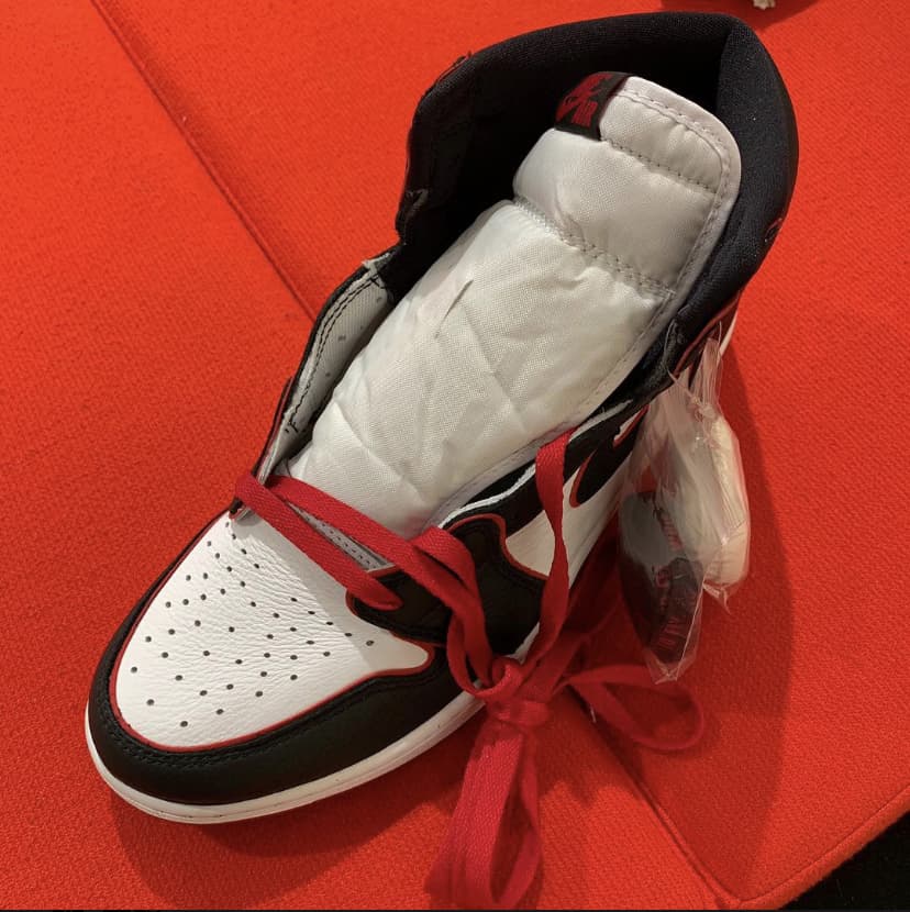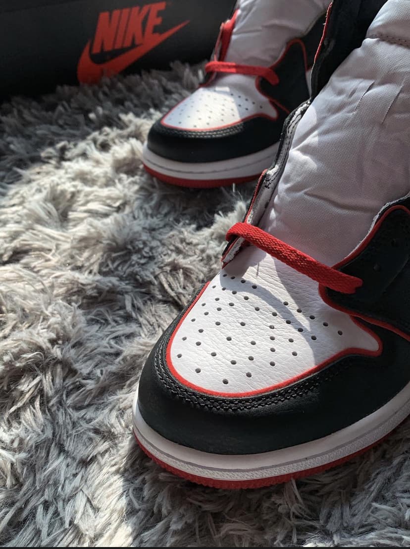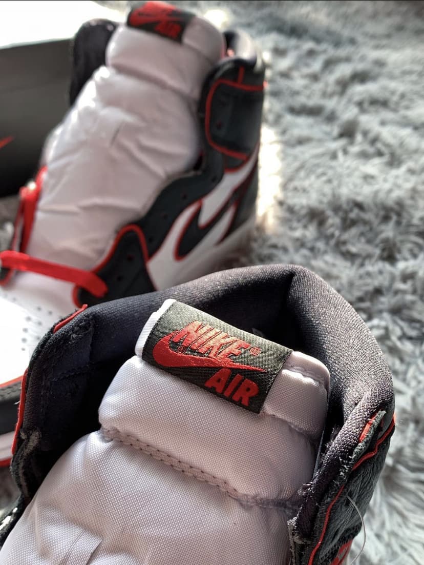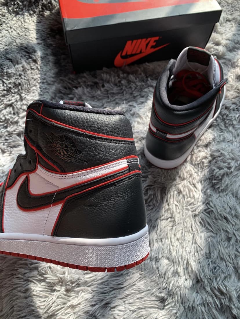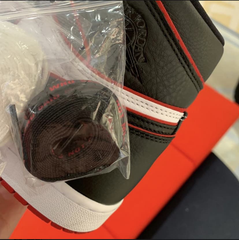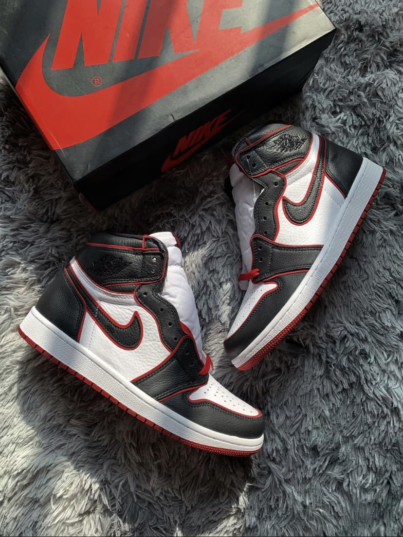 Эта модель чёрно-красного цвета отдаёт дань уважения Чикагским быкам. Верх этой расцветки Jordan 1 High Bloodline оснащен белой кожаной частью с черными накладками и красной отделкой, которая сочетается с кружевами и подошвой. Надписи «Nike Air» и надпись «Who Said Man Was Not Meant To Fly» на доп-х шнурках дополняют дизайн. Эти кроссовки выпущены в ноябре 2019 года и продавались в розницу от 160 долларов. Ознакомьтесь с подробными фотографиями и закажите эту расцветку Air Jordan 1 Retro High OG Bloodline в розничных магазинах или в сервисе Slamdunk- Цвета: Black/Gym Red-White
