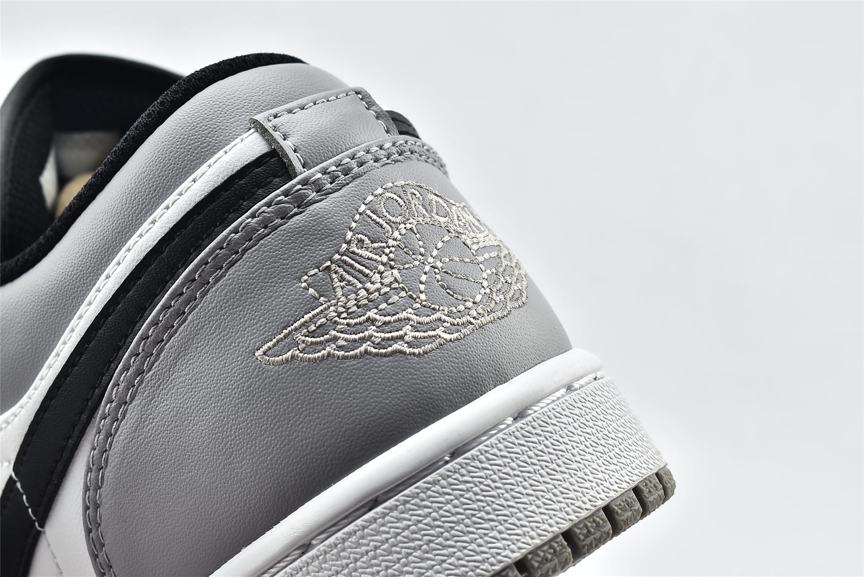 Кроссовки Air Jordan 1 Retro Low Atmosphere демонстрируют классический силуэт, кожаный верх которых выполнен в необычном сочетании сиреневого, белого и черного цветов. Модель Jordan 1 Low дополняют символом Jumpman на нейлоновом язычке и вышитый  логотип Jordan Wings  на пяточной части. Перфорация в носочной части кроссовок обеспечивает лучшую воздухопроницаемость. Белая мидсоль с технологией Air и сиреневая подошва с протектором завершают дизайн.