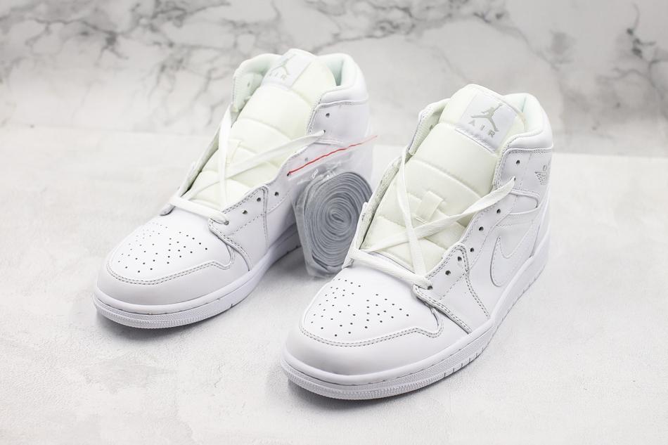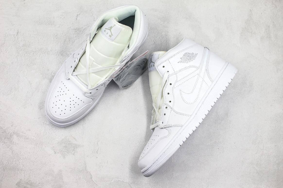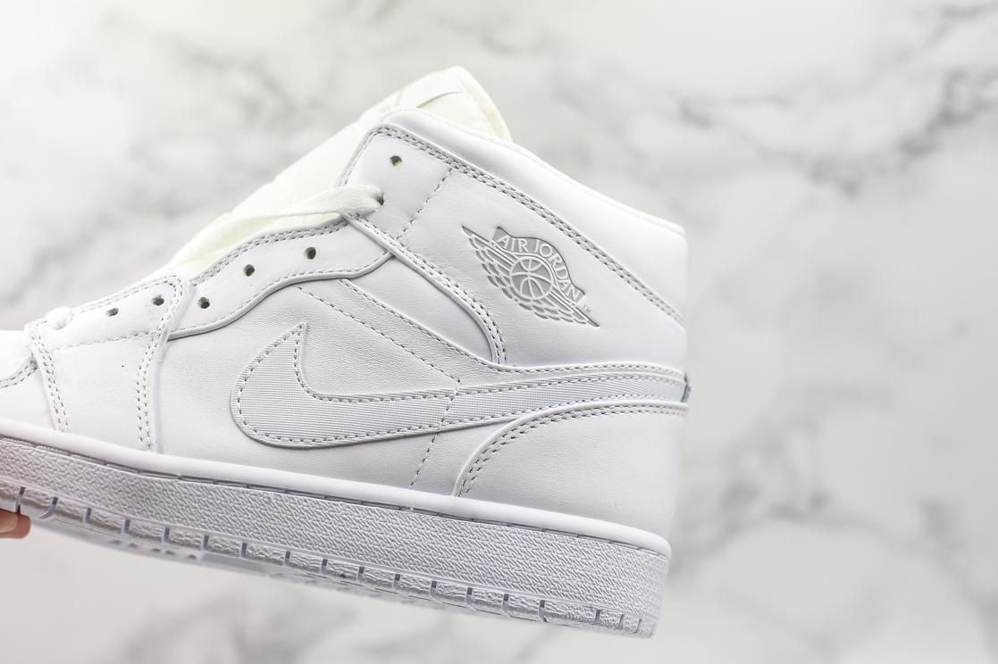 Кроссовки Air Jordan 1 Retro Mid Triple White купить оригинал - цена в Москве и России с бесплатной доставкой - артикул 554724-104