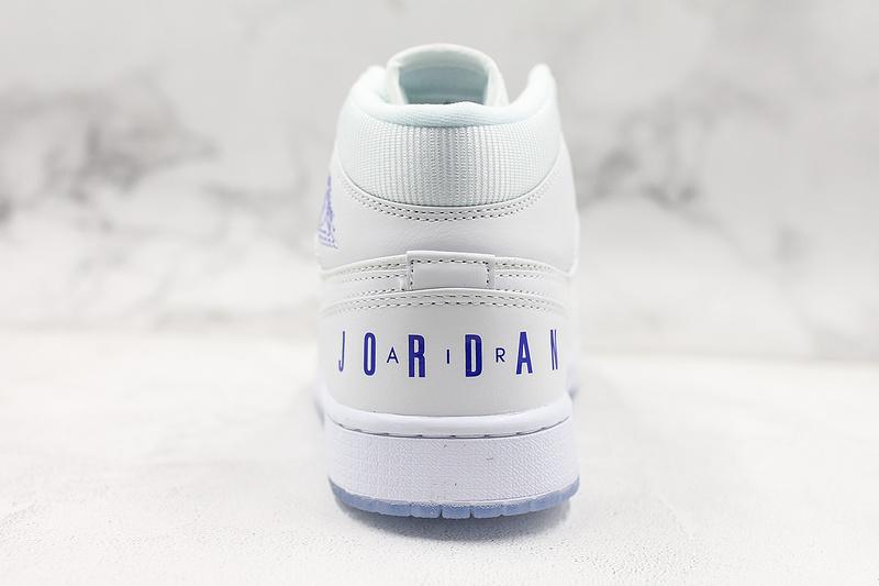 Кроссовки Air Jordan 1 Retro Mid появились в 1985 году. Эти кроссовки White Concord, сочетающие в себе ретро-стиль и современные детали, имеют кожаный верх, они также украшены ребристой тканью. Текстовый рисунок на пятке присоединяется к классическим Wings и Swooshes, наполняя обувь с помощью ДНК бренда Jordan. Амортизирующие элементы Signature Air-Sole расположены поверх полупрозрачной подошвы.- Цвета: White/Concord-White