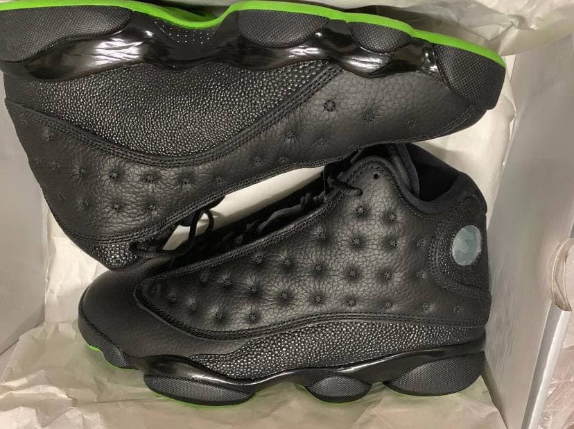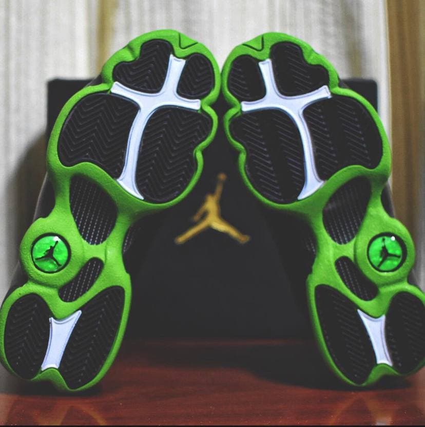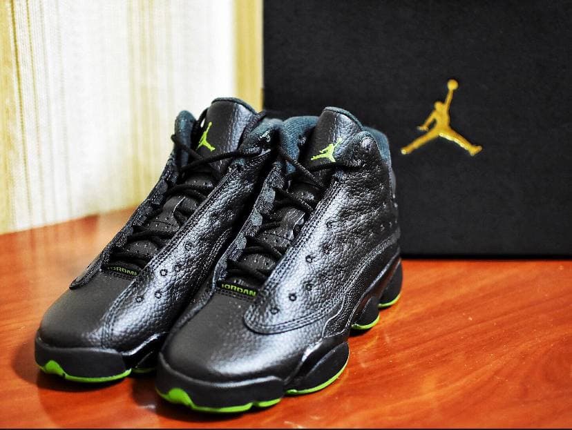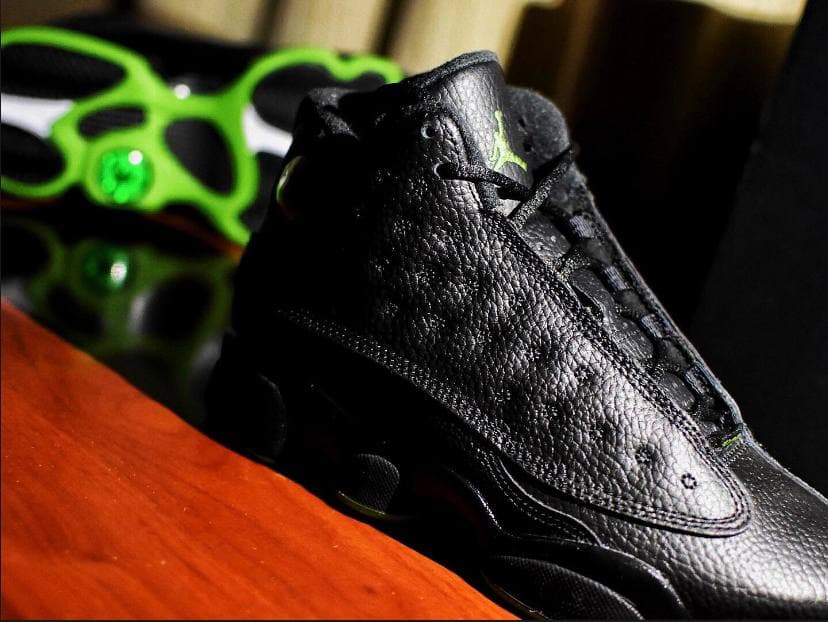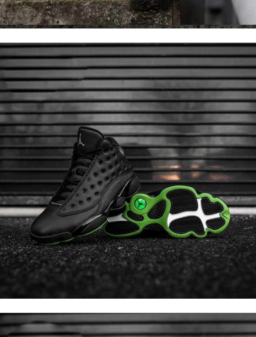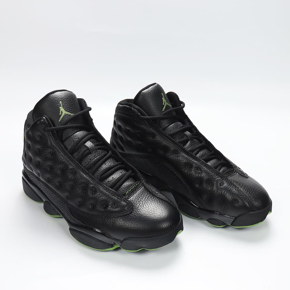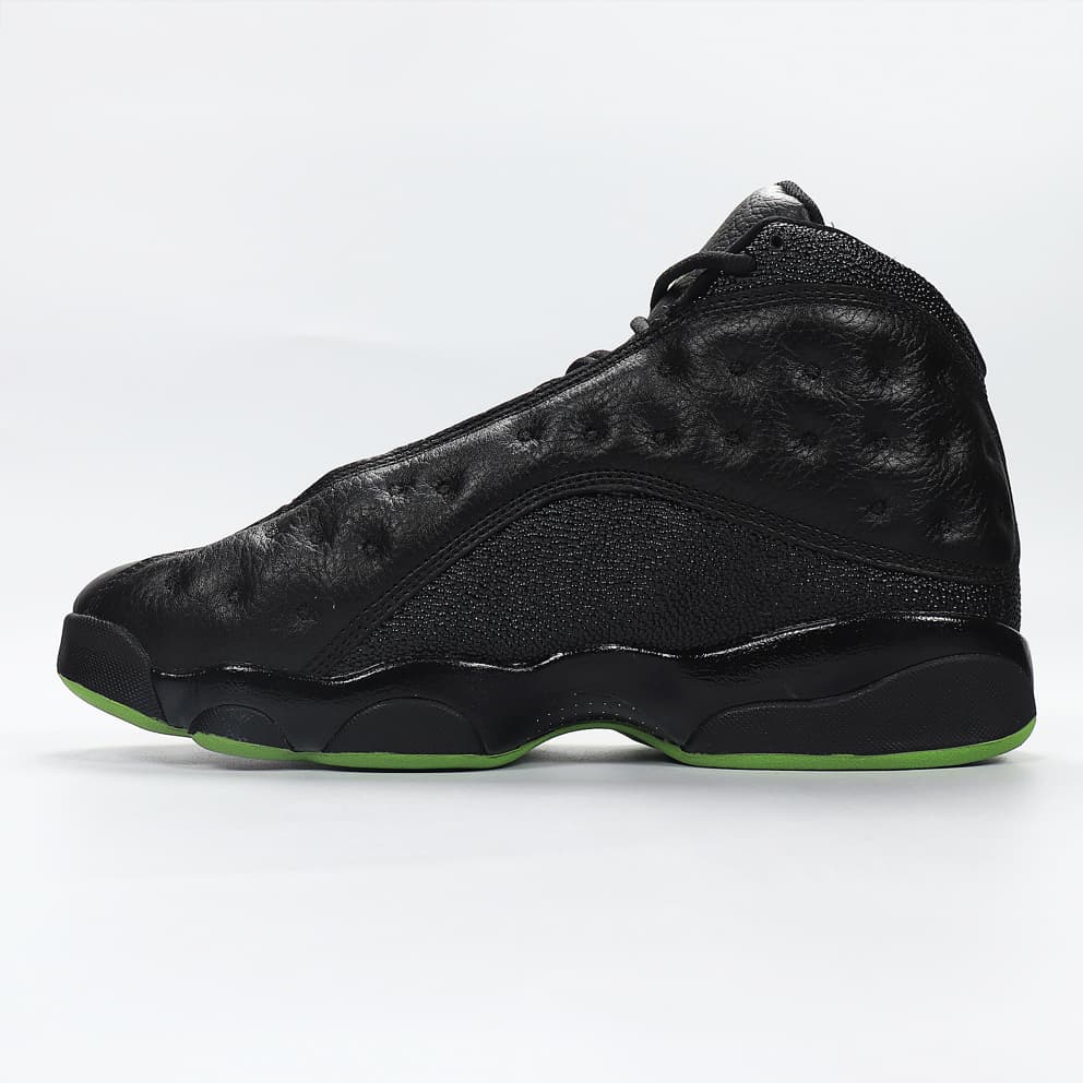 Jordan 13 Retro «Altitude» 2017 - это ретро-переиздание популярной расцветки 2005 года, вдохновленной альтер-эго Майкла Джордана «Черной кошкой». Верная оригинальному дизайну, обувь отличается черным кожаным верхом с кожаными накладками. Цвет верха ограничен зеленым цветом Altitude Green на голографическом логотипе и фирменным язычком Jumpman, а яркий цвет заметно выделяется на подошве. Модель Altitude также была обновлена в 2010 году с сетчатым верхом. Ознакомьтесь с подробными фотографиями и закажите эту расцветку Air Jordan 13 Retro Altitude 2017 в розничных магазинах или в сервисе Slamdunk.- Цвета: Black/Altitude Green
