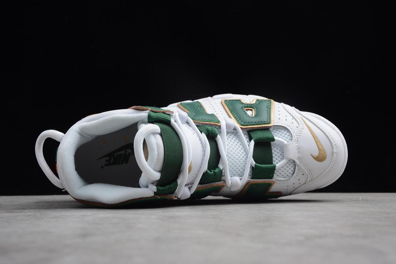 Набор кроссовок Air More Uptempo «City» Pack отражают три города, связанных с ростом легенды Скотти Пиппена. Эта расцветка Atlanta - бело-зелёная с золотым оттенком окраска - отсылка в сторону южного города Атланта, где звезда Chicago Bulls сыграл главную роль в получении золотой медали на Олимпийских играх 1996 года в Атланте. Из деталей ATL - на пятках вышитый логотип персика, а также код города Атланты 404.- Дата релиза: 20 декабря 2017