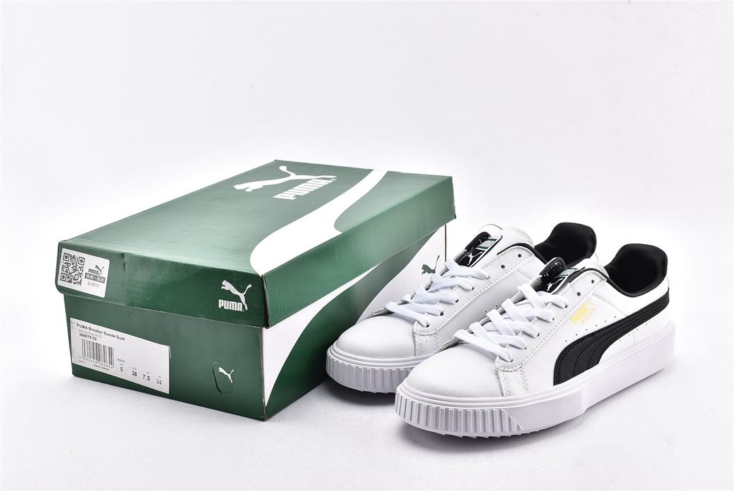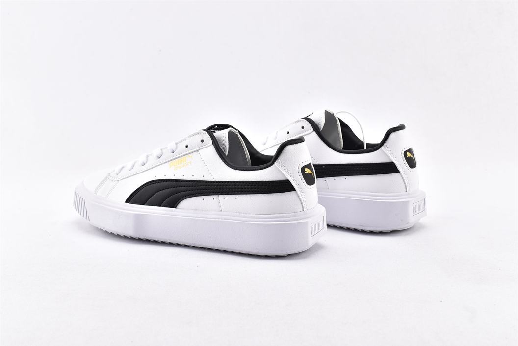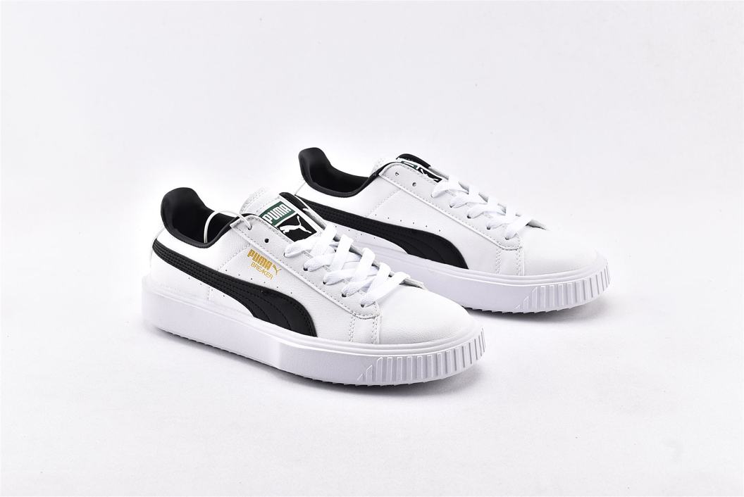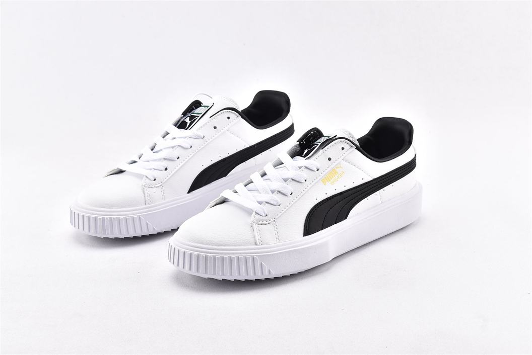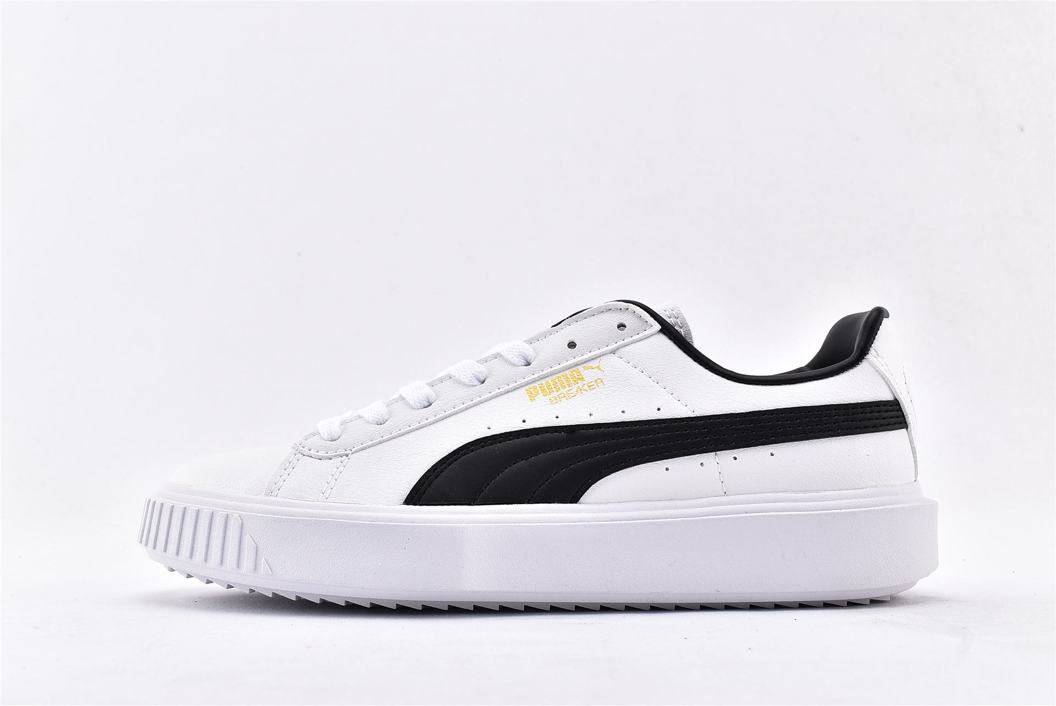 Заказать поиск кроссовок Puma Breaker Leather White Black с бесплатной доставкой. Модель Puma Breaker Leather представляет собой белый кожаный верх с фирменной черной полосой Puma вокруг которой размещена перфорация для воздухопроницаемости и логотипом в золотистом оттенке. Классический силуэт завершается белоснежной подошвой из высокопрочной резины со скульптурным протектором для лучшего сцепления.