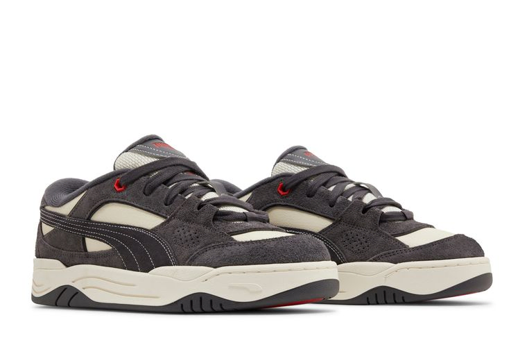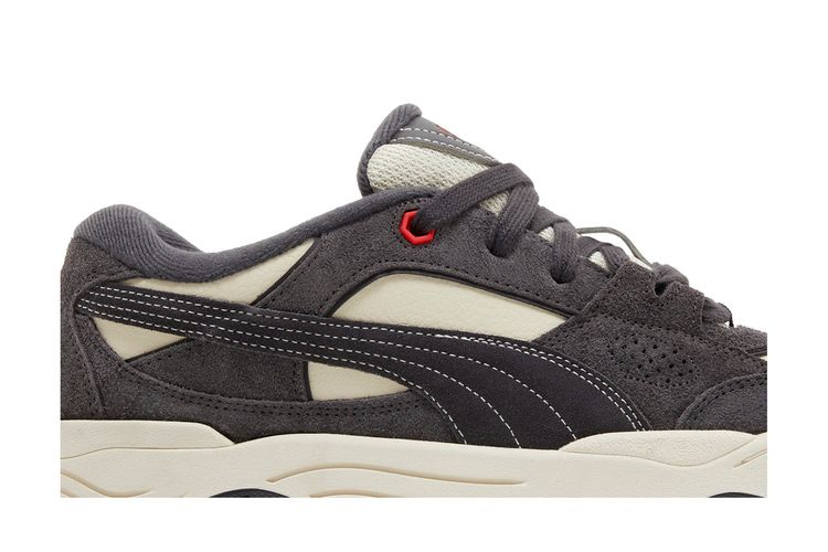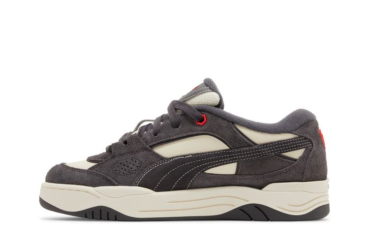 Модель PUMA 180 Pop "Glacial Grey" повторяет характерную эстетику скейт-обуви конца 90-х годов, подчеркнутую толстым силуэтом с завышенной колодкой. Верхняя часть из искусственной кожи кремового цвета с накладками из серой ворсистой замши и подобранной по цвету полосой PUMA Formstrip из гладкой замши. Контрастные малиновые акценты расположены на литых люверсах, язычке и значке PUMA на пятке. Кроссовки опираются на белую литую промежуточную подошву из ЭВА, поддерживаемую прочной резиновой подошвой серо-красного цвета.