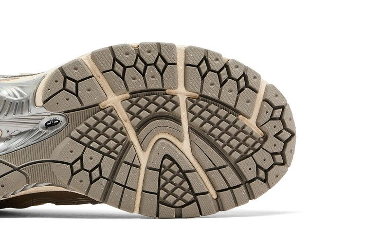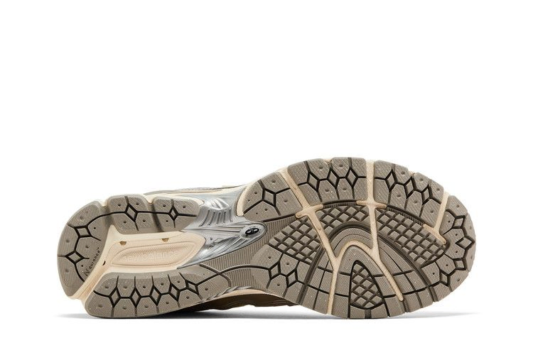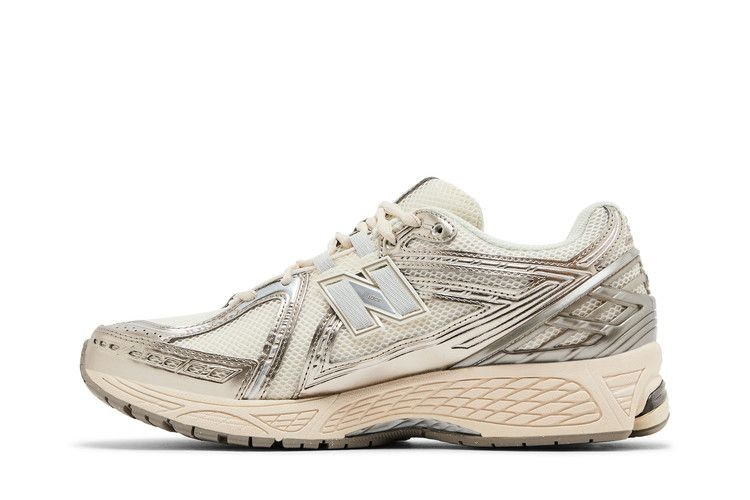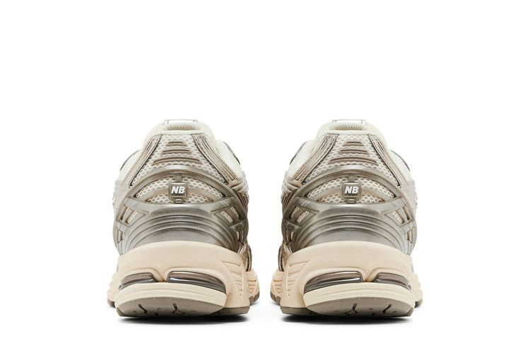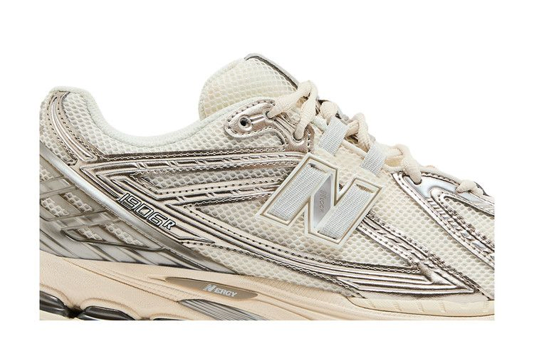 В модели New Balance 1906R 'Arid Stone' используется сетчатый верх с открытыми ячейками цвета слоновой кости, укрепленный накладками из искусственной кожи с платиновым металлическим покрытием. Фирменный логотип New Balance "N" интегрирован в систему шнуровки NLock, которая обеспечивает фиксацию стопы в средней части, а пяточный каркас из TPU обеспечивает устойчивость задней части стопы. Модель опирается на промежуточную подошву ACTEVA LITE с амортизацией N-ergy и сегментированными подушечками ABZORB SBS в пятке.