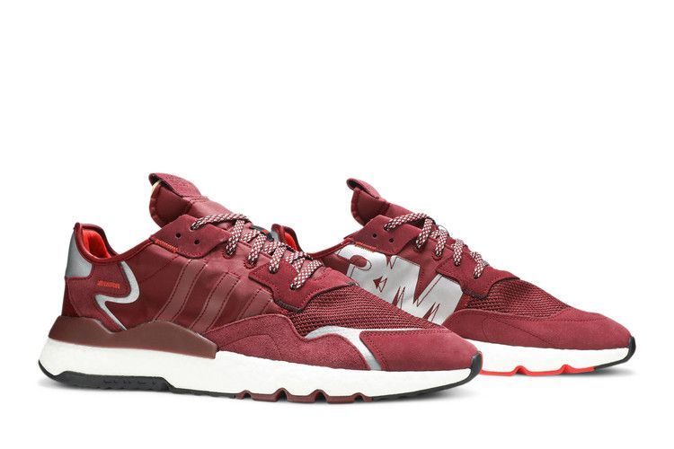 Модель adidas Nite Jogger возвращается в обновленном виде с технологией 3M Scotchlite. Это издание, выпущенное в октябре 2019 года, заимствует аутентичные детали у предшественника 80-х годов, сочетая бордовый нейлон, сетку и замшу. Трехполосные полосы остались по бокам, а светонакопительные элементы видны повсюду. Увеличенная графика логотипа украшает медиальную сторону. Отзывчивая промежуточная подошва Boost и трехцветная резиновая подошва придают кроссовкам современный вид.