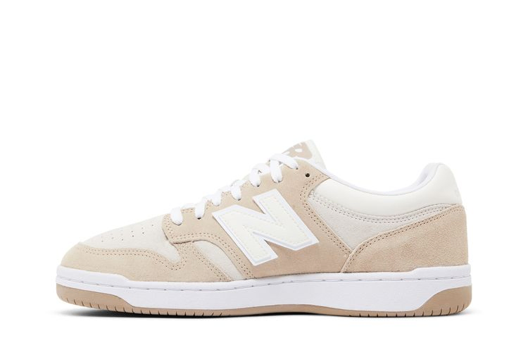 Модель New Balance 480 "Moonbeam Sea Salt" представляет собой силуэт, вдохновленный моделью BB680 - винтажными баскетбольными кроссовками, которые носили в НБА в 80-е годы. Верх из многослойной замши нейтрального оттенка загара, мягкий воротник и перфорированные детали на носке. Логотип 'N' цвета слоновой кости украшает четверть панели, а на язычке красуется брендинг NB 480. Кроссовки имеют прочную резиновую подошву с прошитыми боковыми стенками.