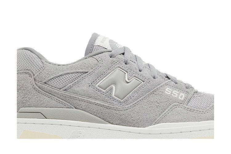 Модель New Balance 550 "Slate Grey" обновляет ретро-силуэт 80-х годов с мохнатым замшевым верхом в нейтральном однотонном цвете. Воздушная сетка используется в области носка, язычка и мягкого воротника для улучшения воздухопроницаемости. Фирменные элементы включают кожаный логотип 'N' и вышитую графику Flying NB на задней пятке. Кроссовки стоят на прочной резиновой подошве с белыми боковыми стенками и внутренним клином из пеноматериала для легкой амортизации.