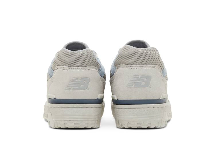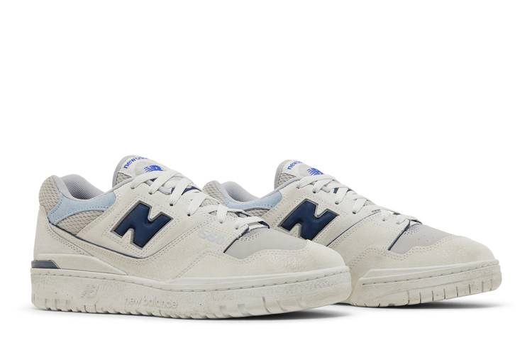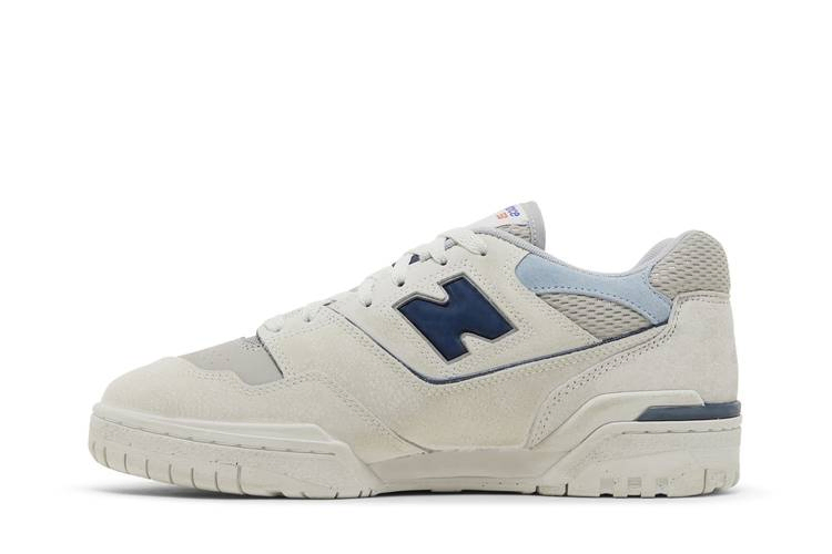 Модель New Balance 550 "Moon Daze" привносит обветренную эстетику в традиционные кроссовки, выпущенные в 1989 году. Белый кожаный верх с контрастными вкраплениями темно-синего цвета на логотипе "N" и пятке. Воздушная серая сетка использована на язычке и низком воротнике, поверх которой наложены детали из пудрово-синей замши. Поношенный внешний вид распространяется на белую резиновую подошву с прошитыми боковыми стенками и танкеткой из пеноматериала на медиальной стороне.