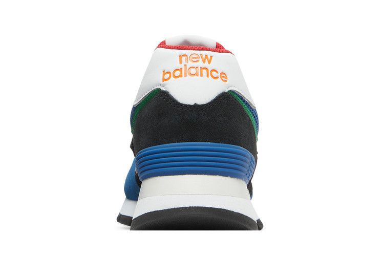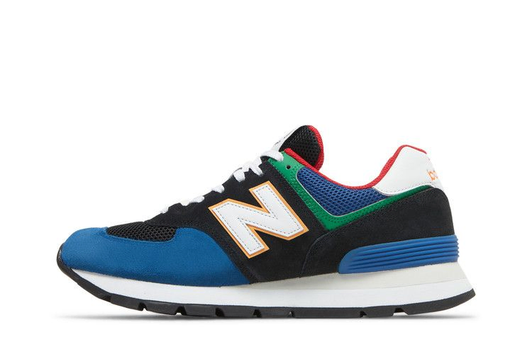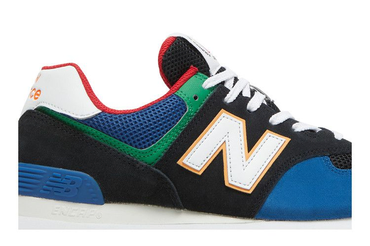 Верхняя часть New Balance 574 Rugged "Black Captain Blue" выполнена из открытой сетки и мягкой замши в контрастных черно-синих тонах с разнонаправленными красными и зелеными акцентами. Фирменный логотип "N" выполнен из белой кожи и очерчен бледно-оранжевым оттенком. Сверху на разноцветной подошве расположена белая межподошва ENCAP, сочетающая в себе мягкую основу из EVA и жесткий полиуретановый бортик. Обновленная подошва из резины имеет рельефную поверхность для лучшего сцепления с поверхностью.