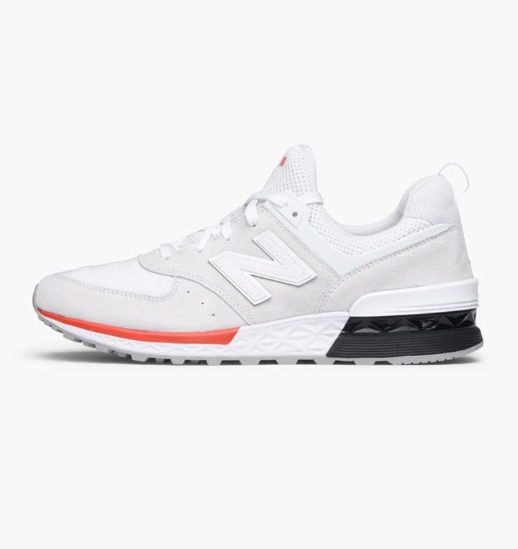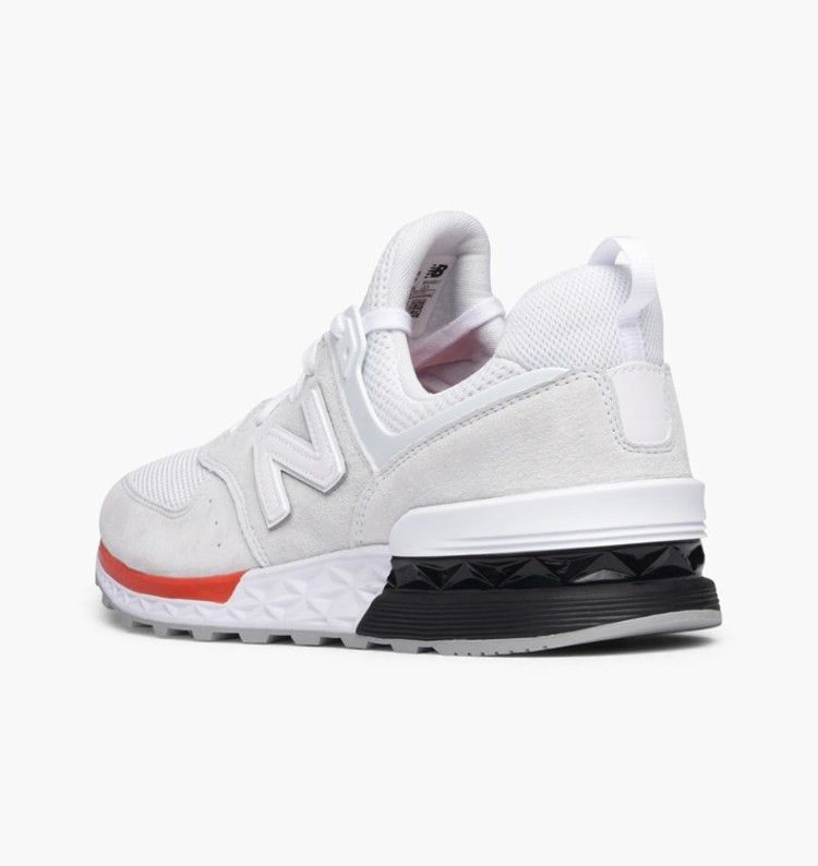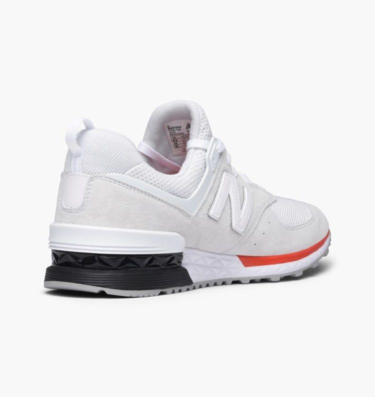 Модель New Balance 574 Sport 'Tier 1', выпущенная в июле 2017 года в черном цвете, имеет верх из сетки и замши в белом тоне, а также формованный пяточный каркас и кожаную подметку 'N' в белом цвете. Трехцветная межподошва Fresh Foam, покрытая контрастными белым, черным и красным оттенками, точно спроектирована для обеспечения мягкого хода.