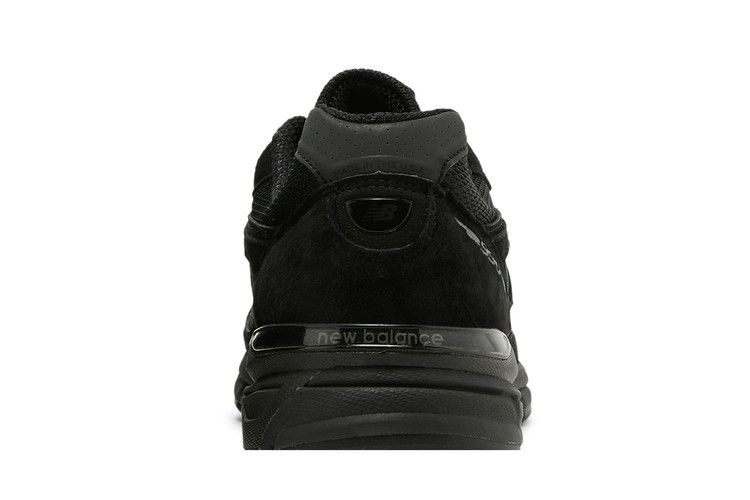 Модель New Balance 990v4 Made In USA 'Black' демонстрирует черный верх, который сочетает в себе дышащую сетчатую основу с накладками из свиной замши и простроченным логотипом 'N' на четверть панели. На язычке расположен значок New Balance с надписью Made in the USA. Промежуточная подошва ENCAP, состоящая из легкой пены и прочного полиуретанового обода, поддерживает монохромную эстетику кроссовок.