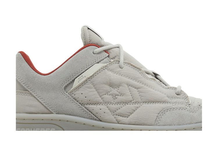 Модель A-Cold-Wall* x Converse Weapon Low 'Flint Rust' переосмысливает классические кроссовки с обновленным дизайном. Верхняя часть, выполненная из нейлона и замши, имеет нейтральный серый цвет и фиксируется фирменной системой шнуровки A-Cold-Wall*. Внутренняя отделка из текстиля цвета ржавчины придает контрастный оттенок. Брендинг 'ACW_CNVS' присутствует на язычке, носочной части и медиальном воротнике. Кроссовки стоят на полупрозрачной резиновой подошве.