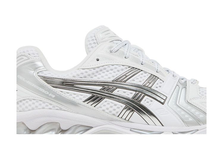 Модель A.P.C. x ASICS Gel Kayano 14 'White Pure Silver' объединяет бренды-партнеры в рамках капсульной коллекции, вдохновленной теннисом. Модель выполнена из воздушной белой сетки с тональными накладками из искусственной кожи и серебристыми металлическими боковыми полосками. На носочной стельке нанесен двойной брендинг, а спиральный логотип ASICS интегрирован в знак A.P.C., украшающий язычок пятки. Кроссовки опираются на легкую промежуточную подошву из ЭВА с видимой амортизацией Gel.