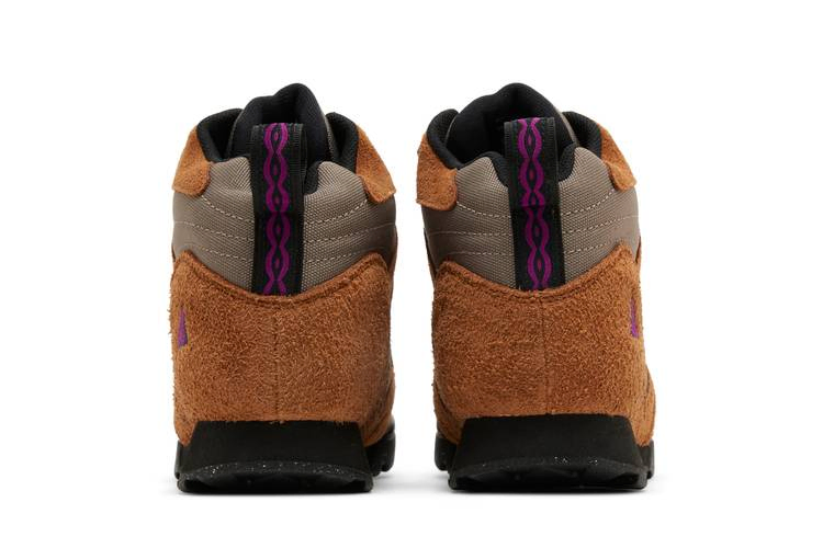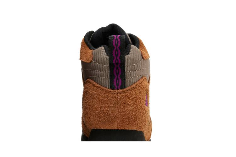Модель Nike ACG Torre Mid Waterproof "Pecan" возвращает к жизни прочные туристические ботинки, выпущенные в 1995 году. Верхняя часть, защищенная от непогоды желтыми шнурками, сочетает в себе серую сетку и ворсистую замшу светло-коричневого оттенка. Нейтральная цветовая гамма нарушается контрастными акцентами цвета красной сливы, среди которых логотип ACG, вышитый на боковой пятке, и петля для подтягивания на пятке. Черная резиновая подошва обеспечивает надежное сцепление с поверхностью.