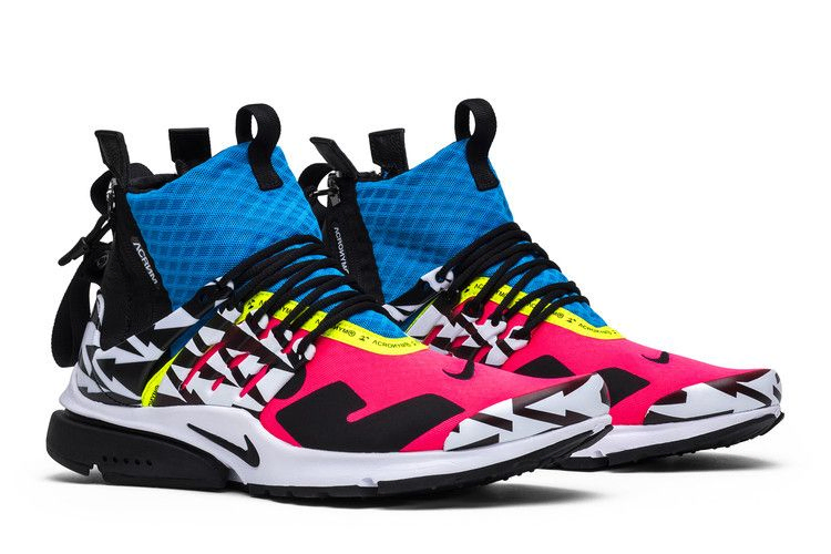 Мюнхенский бренд ACRONYM объединился с Nike, чтобы выпустить эксклюзивную расцветку для обновления Air Presto Mid. Acronym x Air Presto Mid 'Racer Pink' имеют верх из текстильной сетки и синтетики с черно-белыми узорами на каркасе из TPU. Кроссовки также украшены деталями Racer Pink, Photo Blue и желтыми деталями на лодыжке, передней части стопы и заднике. Посадка кроссовок подчеркивается эластичной системой шнуровки и молнией на удлиненной лодыжке.