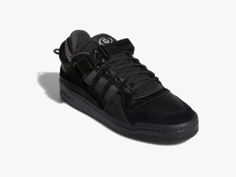 Эта черная расцветка отличается монохромным верхом, сочетающим в себе премиальную кожу и замшу. Сдвоенные язычки с фирменным изображением глаз Банни возвращаются, а также ожидается фирменный хит «Yo Visto Asi». Дополнительную привлекательность придают шнурки с вольтово-зелеными эглетами. Завершает дизайн черная межподошва.- Цвета: Core Black/Core Black/Core Black