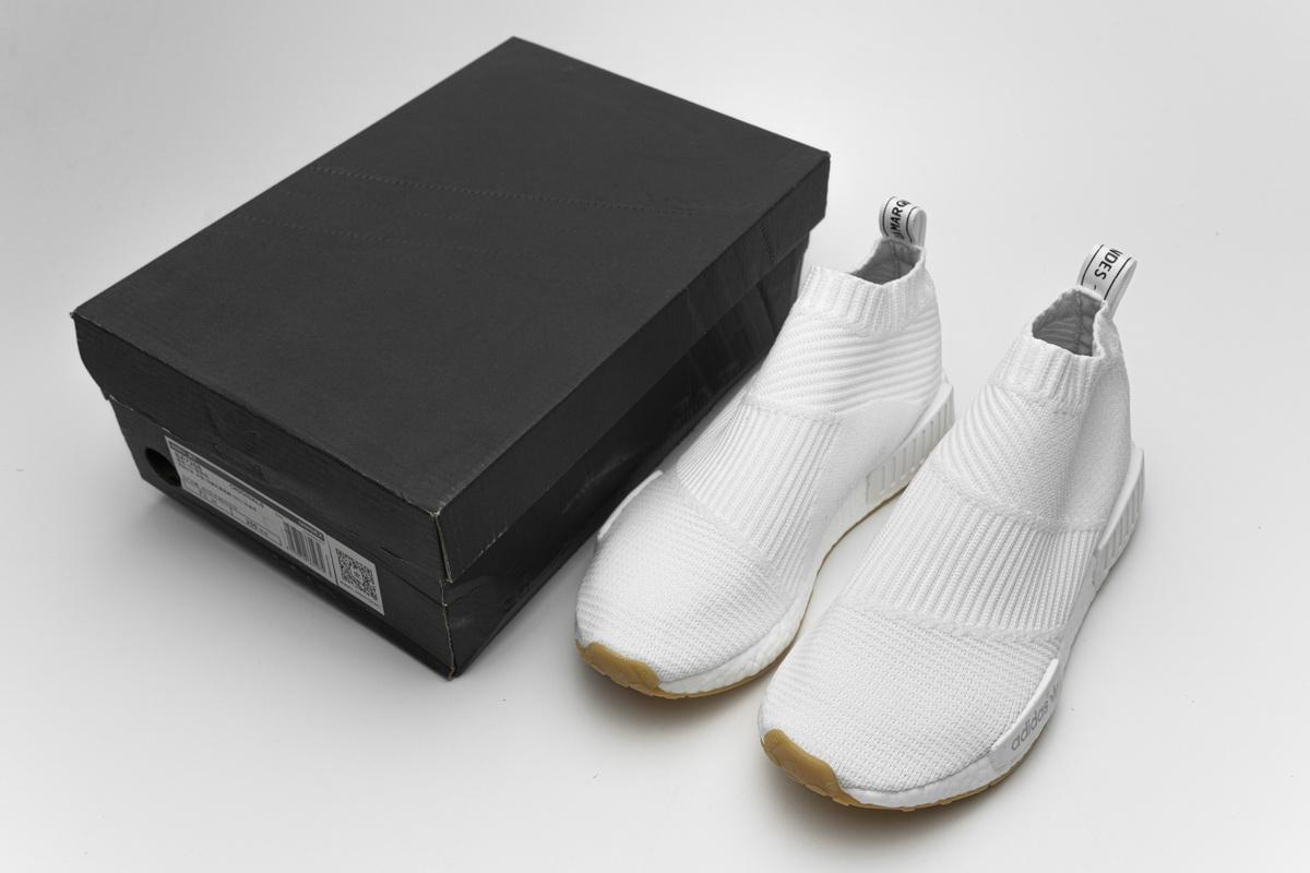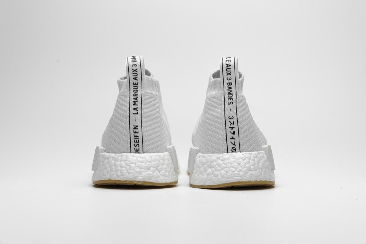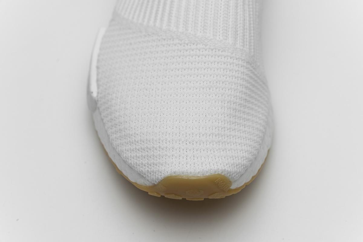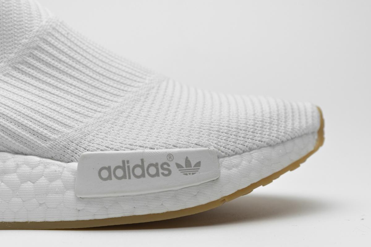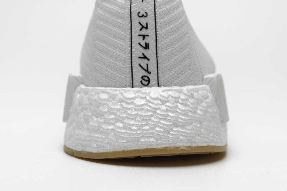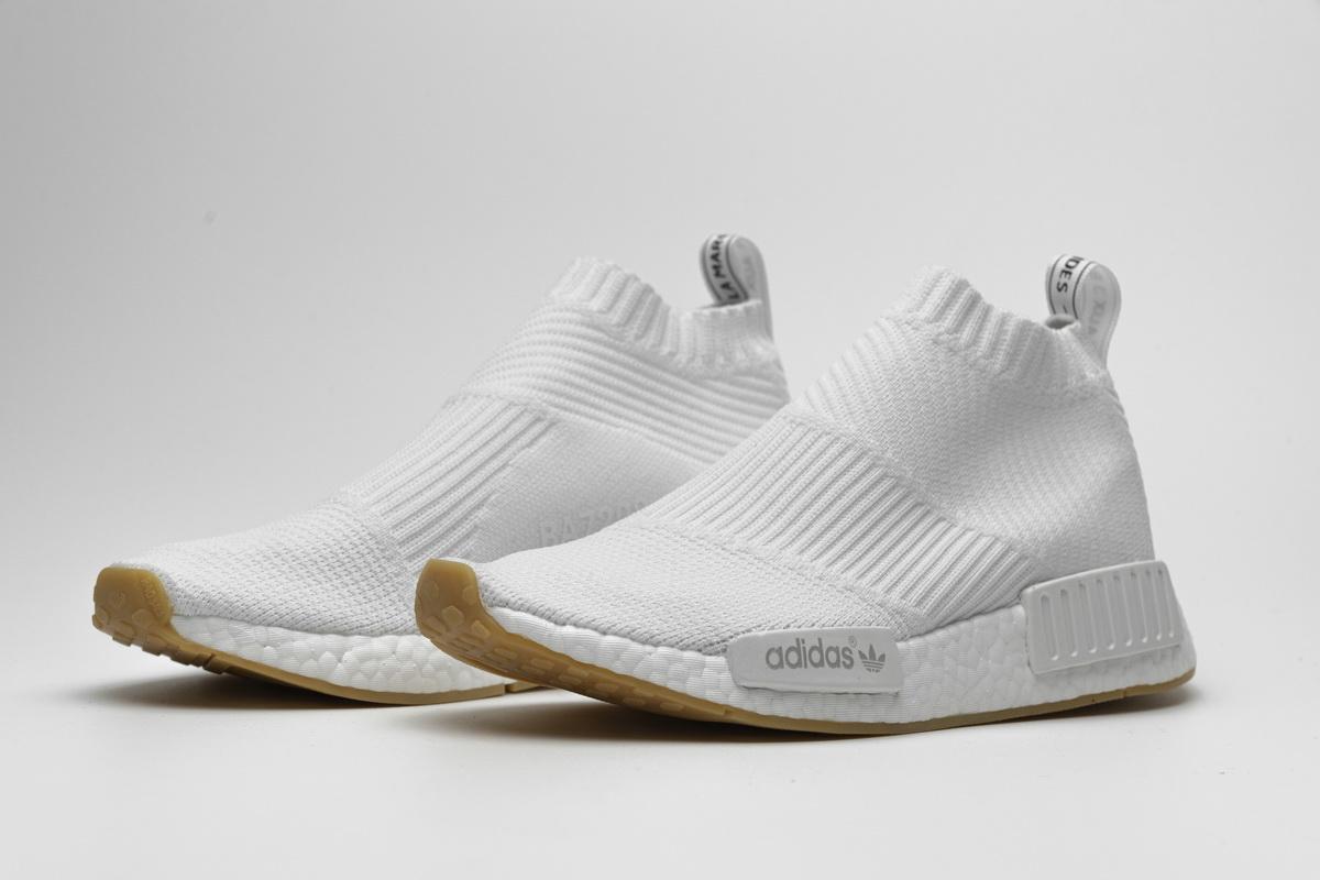 NMD_CS1 Primeknit 'White Gum' отличается белым верхом Primeknit с белой мидсолью Boost и классической резиновой подошвой. Дизайн без шнурков также включает фирменный язычок на пятке и белые вставки из этиленвинилацетата в мидсоли. Кроссовки, выпущенные в феврале 2017 года, были уложены в две упаковки с расцветкой Black Gum и вышли вновь в апреле 2017 года из-за высокого спроса.- Цвета: Footwear White/Footwear White-Gum