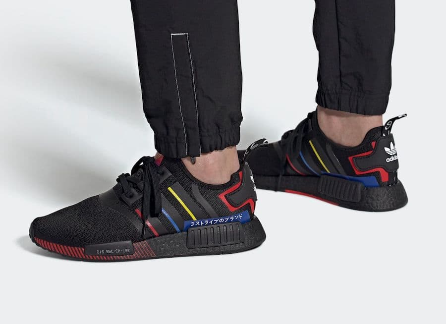 Выпущенная в составе двух частей "Olympic Pack", adidas NMD_R1 "Black" имеет смешанную палитру, отражающую композицию олимпийских колец. Контрастные желтый, синий и красный цвета нанесены на сварную конструкцию, что позволяет брендингу выделяться на фоне черного текстильного верха. Дополнительные красные и синие акценты расположены на пятке и язычке, последний украшен логотипом Trefoil с золотистым металлическим отливом.- Цвета: Olympic Pack - Black