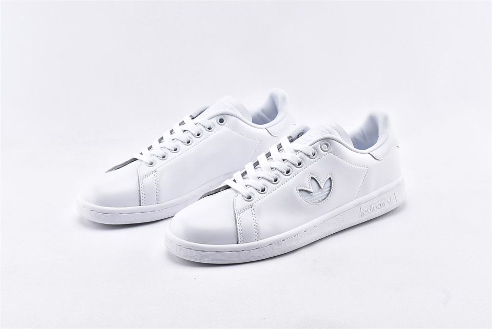 Модель Adidas Stan Smith Footwear White имеет определяющие характеристики силуэтов ее предшественников. Кроссовки включают в себя полностью кожаный верх белого цвета с воздухопроницаемой сетчатой подкладкой. Классический логотип бренда из трех полосок заменен на стильный трилисник. Кроссовки также имеют мягкую пятку, прочный носок и белоснежную резиновую подошву.- Цвета: Footwear White/Footwear White/Footwear White