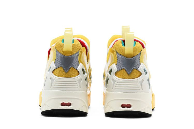 Модель adidas x Reebok ZX Fury 'Spring Yellow' подчеркивает яркие оттенки гибридного силуэта, сочетающего в себе элементы adidas ZX 8000 и Reebok Instapump Fury. Надувная клетка последних выполнена в желтом цвете и наложена на белоснежную текстильную основу. Язычок украшает красная кнопка, а вырез на заднике открывает полупрозрачные три полоски adidas в зеленом цвете EQT. Модифицированная версия культовой пяточной стойки ZX обеспечивает устойчивость задней части стопы. Разделенная подошва Instapump Fury из EVA сочетается с резиновой подошвой ZX 8000.