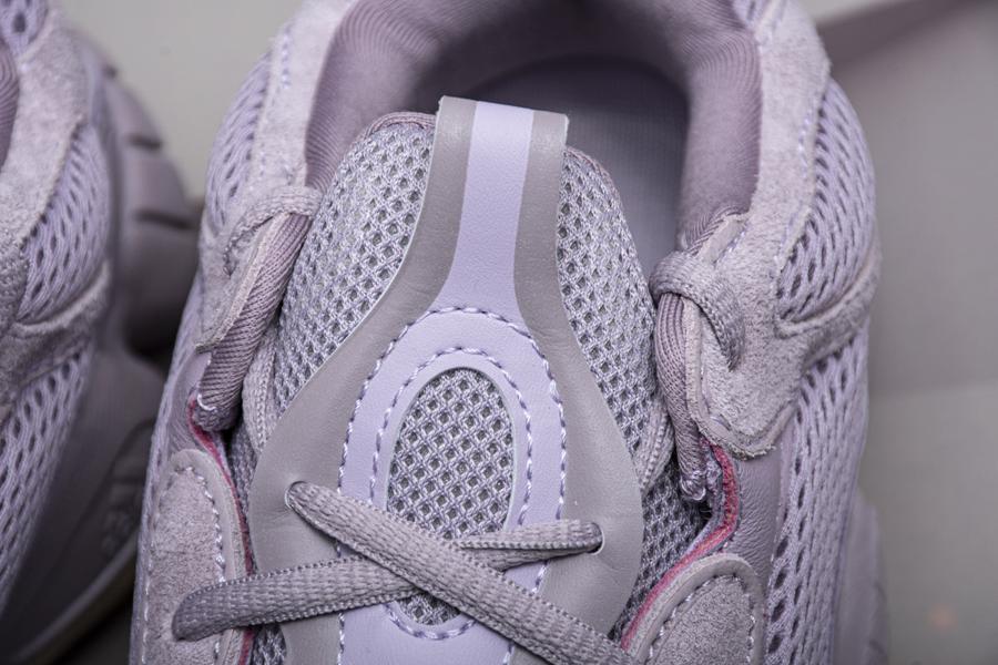 Модель adidas Yeezy 500 Soft Vision сочетает в себе ретро-дизайн немецкого бренда и стремление Kanye West к будущему индустриализму. Эта модель в оттенке Soft Vision выпущена в ноябре 2019 года. Кроссовки содержат элементы из кожи и замши в соответствующей палитре и элементы для лучшей вентиляции. Шнурки, пропущенные через накладку язычка, так же имеют оттенок Soft Vision. В кроссовках используется межподошва с технологией Adiprene для мягкой поддержки стопы и изогнутая подошва из резины.- Цвета: Soft Vision/Soft Vision/Soft Vision