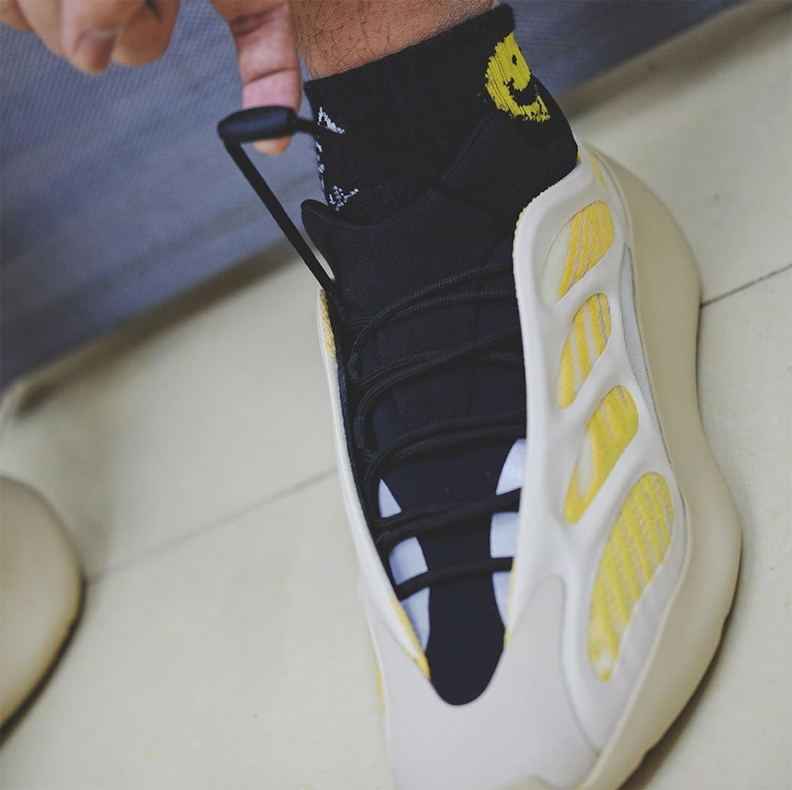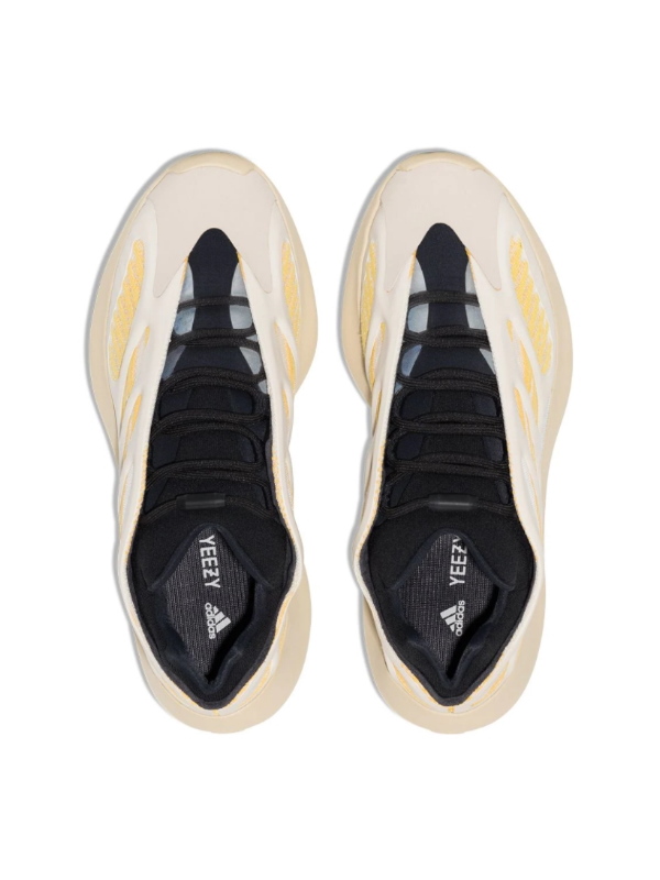 Adidas Yeezy 700 Safflower демонстрирует в основном нейтральную цветовую схему, соответствующую фирменной палитре бренда Yeezy. Легкие оттенки цвета появляются через желтые полосы по всему верху из моноволоконной инженерной сетки, покрытой светящейся в темноте клеткой RPU, которая простирается от носка до пятки. Внутренняя конструкция кроссовок выполнена в контрастном черном цвете, обеспечивая плотную и удобную посадку. Промежуточная подошва из этиленвинилацетата, инкапсулированная полиуретаном, закрепляет обтекаемый силуэт. Ознакомьтесь с подробными фотографиями и закажите эту расцветку adidas Yeezy 700 V3 Safflower в розничных магазинах или в сервисе Slamdunk- Цвета: Safflower/Safflower/Safflower