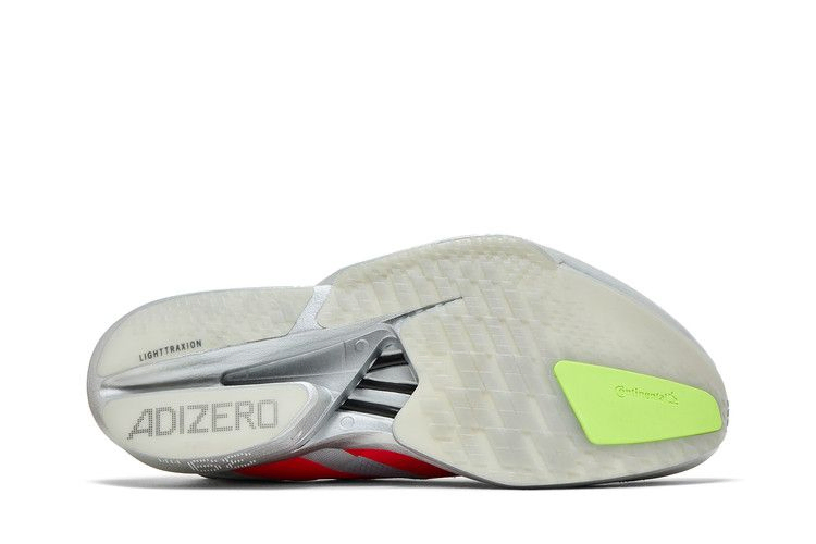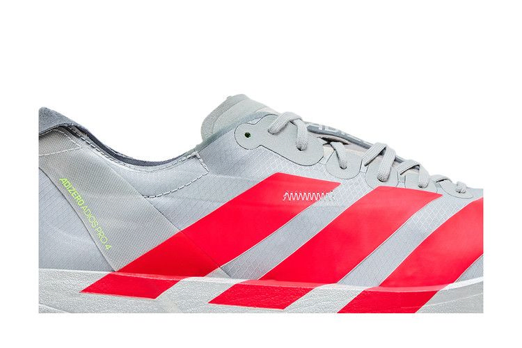 В честь японских бегунов на длинные дистанции adidas Adizero Adios Pro 4 "Ekiden Pack" выполнены из серой эластичной сетки с большими тремя полосками Lucid Red. Серебристый металлик покрывает высокую межподошву, состоящую из двойного слоя пены Lightstrike Pro с ENERGYRODS 2.0 для плавного перехода с пятки на носок и эффективного шага. Подошва LIGHTTRAXION с подошвой Continental Rubber в передней части стопы обеспечивает оптимальное сцепление с поверхностью.