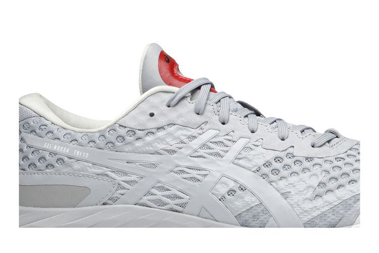 Модель Affix Works x ASICS Gel Noosa Tri 12 "Piedmont Grey", созданная в сотрудничестве с творческой студией/коллективом уличной моды, имеет бесшовный верх из двухслойной сетки светло-серого цвета. Белая прорезиненная крышка носка обеспечивает дополнительную прочность, а контрастные красные вставки облегчают надевание и снятие. Низкопрофильный силуэт поддерживается промежуточной подошвой FLYTEFOAM с амортизацией GEL в пятке.