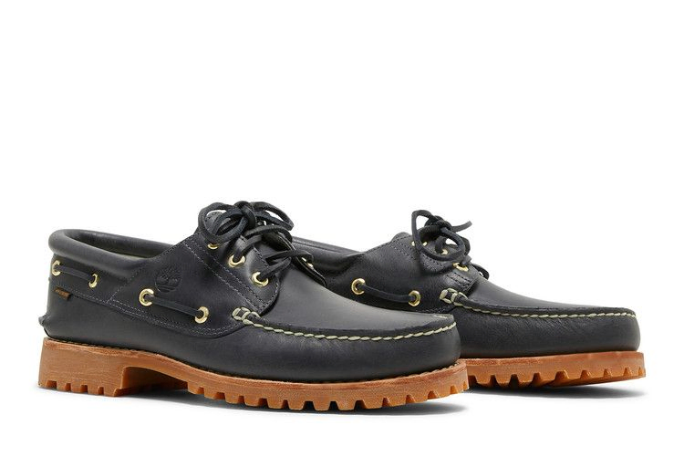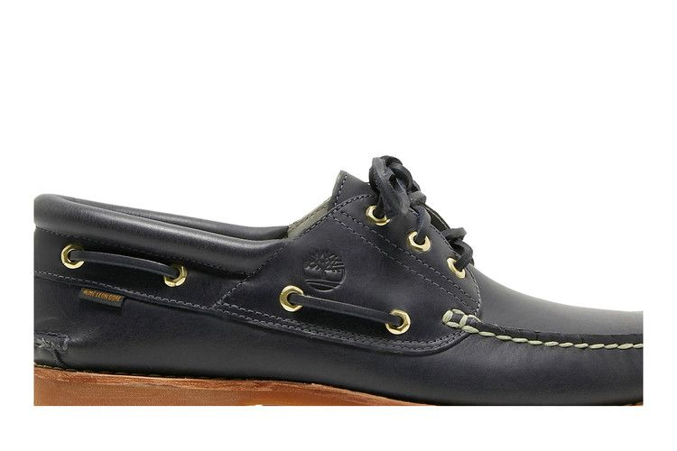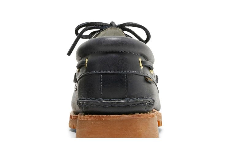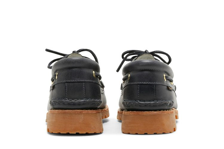 Модель Aimé Leon Dore x Timberland 3-Eye Lug 'Navy', созданная в рамках трехсторонней коллаборации с нью-йоркским брендом мужской одежды Teddy Santis, имеет верх из натуральной коровьей кожи, сшитый вручную, и 360-градусную систему шнуровки из сыромятной кожи. На седле выбит логотип Timberland в виде дерева, а на боковой пятке прикреплена тканая бирка ALD. Дополнительное клеймо расположено на носочной части из EVA, обеспечивающей легкую амортизацию. Резиновая подошва с шипами поддерживает силуэт.