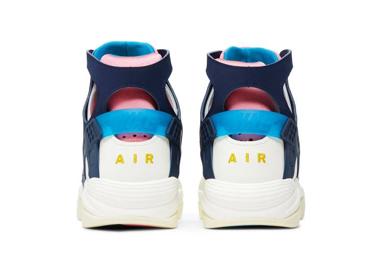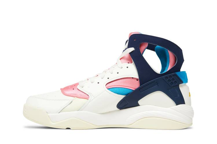 Модель Nike Air Flight Huarache "Nike Gear" возвращает нас к новаторским кроссовкам 90-х годов, разработанным Тинкером Хэтфилдом и Эриком Аваром. Верхняя часть из белой кожи контрастирует с темно-синими акцентами на воротнике-стойке и TPU-каркасе пятки. Пастельные оттенки Coral Chalk и Laser Blue украшают внутреннюю часть ботинка и язычок, последний отмечен ретро-завязкой Huarache. Помимо вышивки "AIR" на задней части пятки, элементы брендинга включают стельки "Nike Gear" - отсылка к линии спортивной одежды Nike 90-х годов. В основе кроссовок лежит легкая подошва Phylon с амортизацией Air в носочной и пяточной частях.