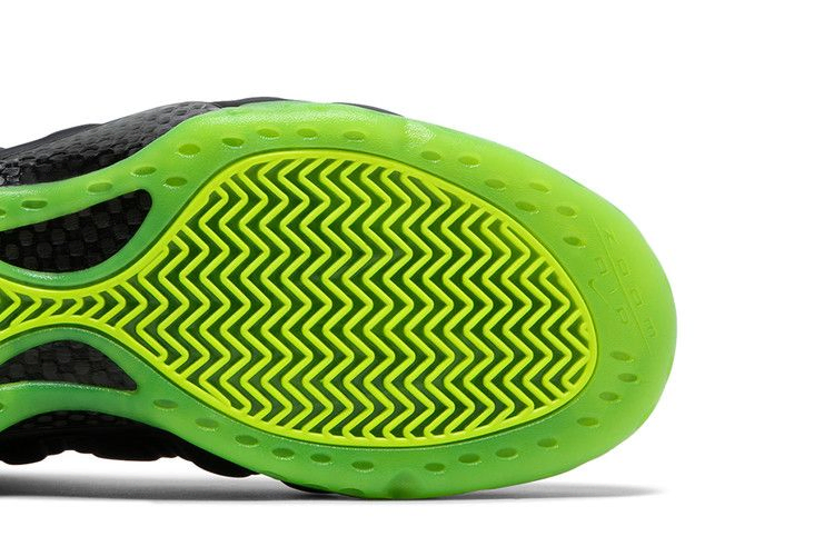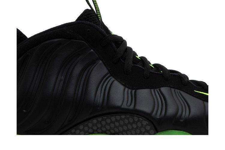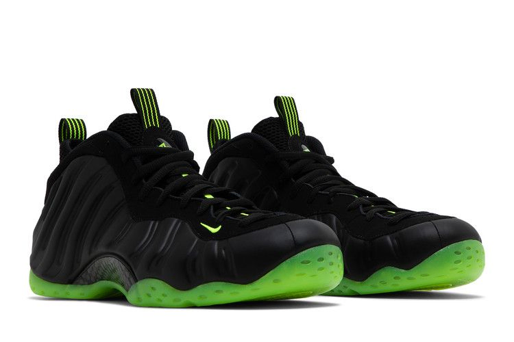 Nike Air Foamposite One 'Black Volt' имеют цельнолитой черный верх Foamposite, сформированный с помощью жидкого полиуретана, залитого в форму. Фирменные элементы выполнены в неоново-зеленом цвете, включая мини-Swoosh на накладке из нубука и логотип Пенни Хардауэя 1 Cent, вышитый на задней части воротника из текстильного трикотажа. Промежуточная подошва из скрытой пены обеспечивает амортизацию Zoom Air по всей длине, а также дополнительный блок Zoom Air в пятке. Под средней частью стопы находится хвостовик из углеродного волокна, обеспечивающий жесткость на скручивание.