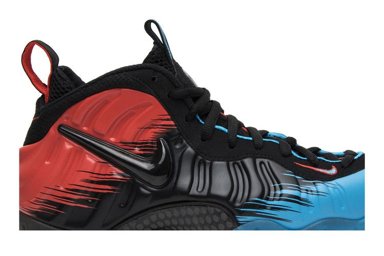 В этой версии кроссовок Nike Air Foamposite Pro, вышедшей в 2014 г., икона хардвуда 1997 г., получила новое воплощение. Модель известна как "Человек-паук". Фирменный верх кроссовок окрашен в яркий синий цвет, покрывающий брызговик и переднюю часть подошвы, и в малиновый - на задней части пятки. В этой итерации используется пенопластовая конструкция и впечатляющий интерьер оригинала.