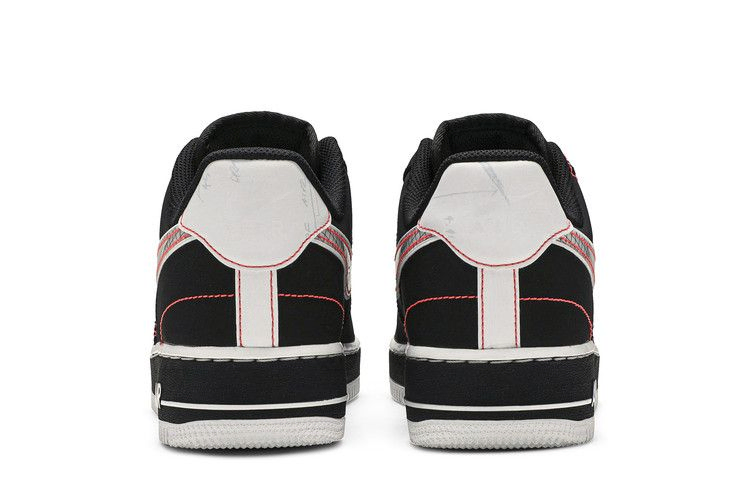 Air Force 1 '07 LV8 "Exposed Stitching" - это классический силуэт с привлекательным дизайном благодаря частично затемненной межподошве и нитке с иголкой. Верхняя часть преимущественно черного цвета украшена контрастной красной строчкой, расположенной в разных местах, включая простую букву "x" в боковой части носка и зигзагообразную линию на задней панели. Еще больше красной строчки находится на белом логотипе Swoosh, покрытом сетчатым узором по всей поверхности.