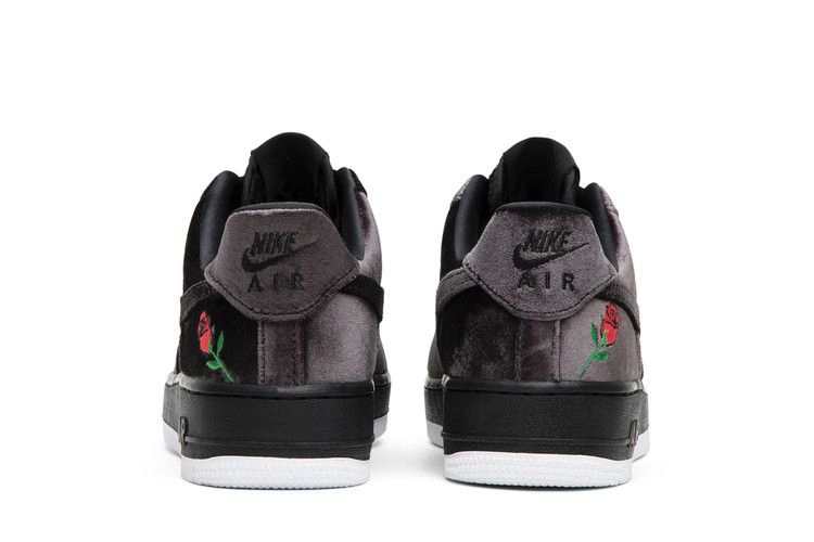 Модель Air Force 1 Low получила роскошную накладку из черного атласа с мерцающим блеском, а на шнурке-дублере появилась золотая аппликация с надписью "2018". Кроме того, на пятке красуется вышивка в виде розы, а подошва контрастно окрашена в белый цвет.