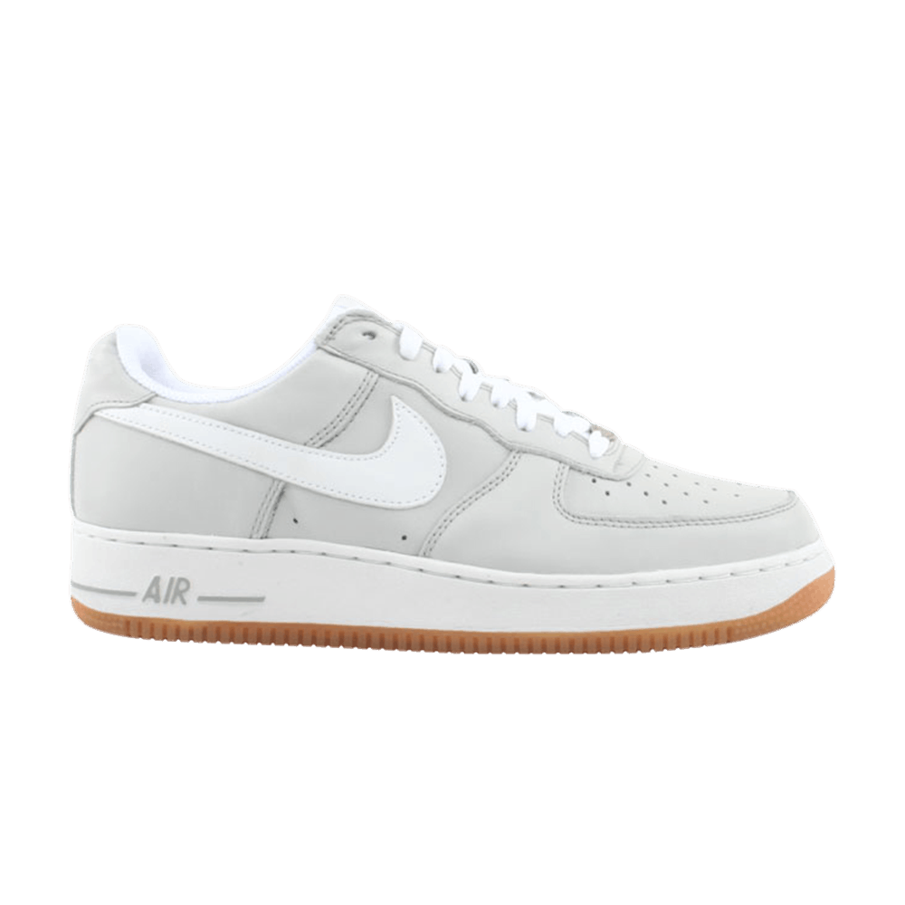 Модель Nike Air Force 1 изначально задумывалась как баскетбольная обувь, разработанная Брюсом Килгором в 1982 году. AF1 стали первыми баскетбольными кроссовками, в которых была применена новаторская технология Air от бренда Swoosh, что позволило добиться высокой чувствительности на твердом покрытии и за его пределами. В этом варианте AF1 выполнены в нейтральном серо-белом цвете.