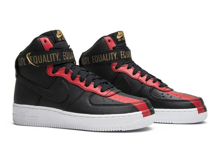 Модель Air Force 1 High 'BHM' является частью программы Nike, приуроченной к Месяцу черной истории. Верх кроссовок выполнен из черной кожи с красными и зелеными акцентами на горле и системе шнуровки в знак уважения к панафриканскому флагу - если вы присмотритесь, то увидите флаг по центру носка и пятки. Кроссовки также украшены золотистым металлическим брендингом на уникальном логотипе на пятке и надписью EQUALITY на ремешке на щиколотке, а также толстой белой резиновой подошвой.