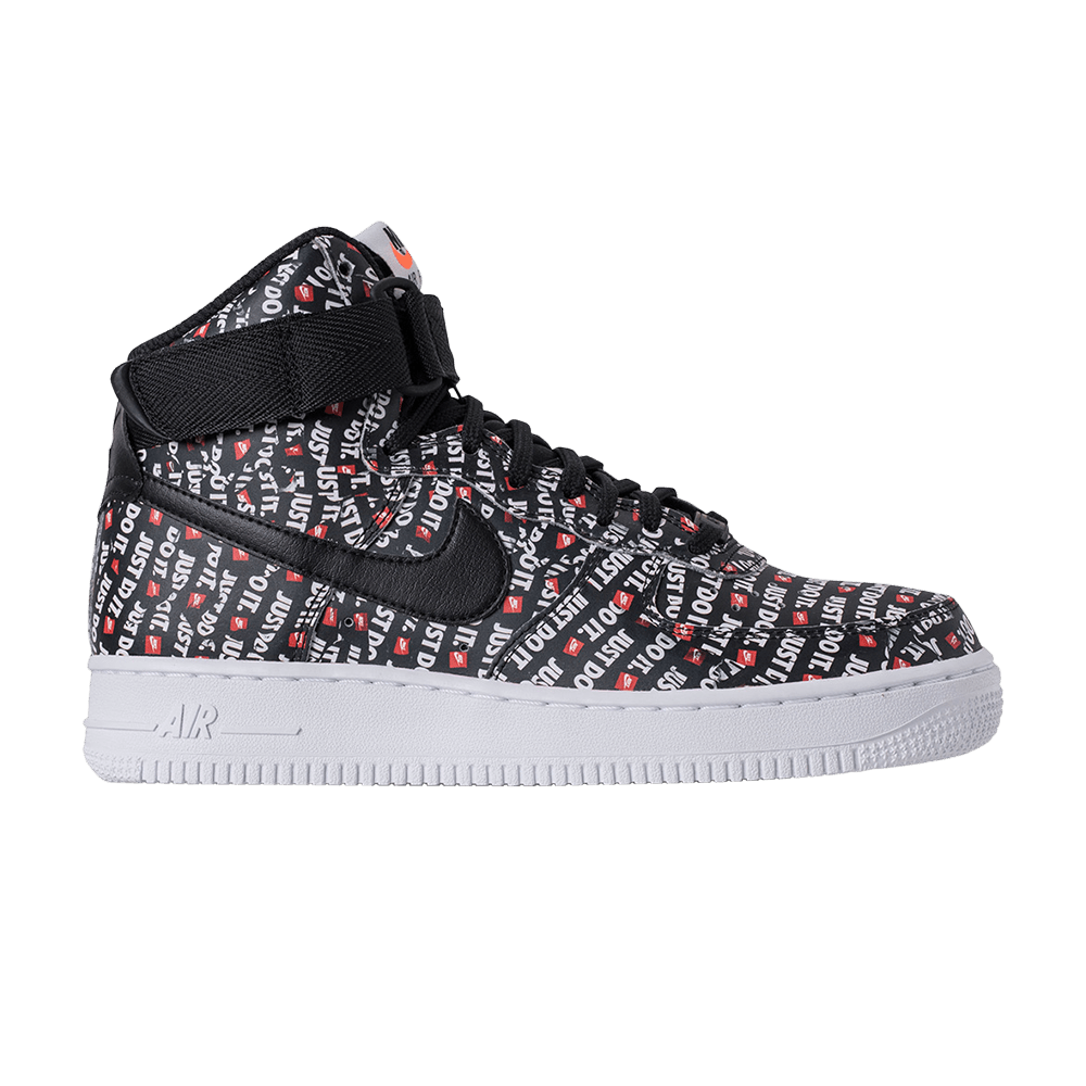 В июне 2018 года компания Nike отпраздновала 30-летие своего слогана "Just Do It", выпустив обширную коллекцию обуви. Модель Nike Air Force 1 High 'Just Do It' передает дух этого релиза с помощью принта, состоящего из одноименной фразы, подчеркнутой маленьким оранжевым логотипом Nike Swoosh. Тональные черные цвета присутствуют на кожаном логотипе, язычке пятки, шнурках и регулируемом ремешке на лодыжке. Оживленный дизайн верхней части кроссовок контрастирует с белой резиновой подошвой под ногами.