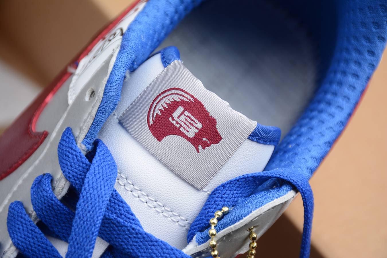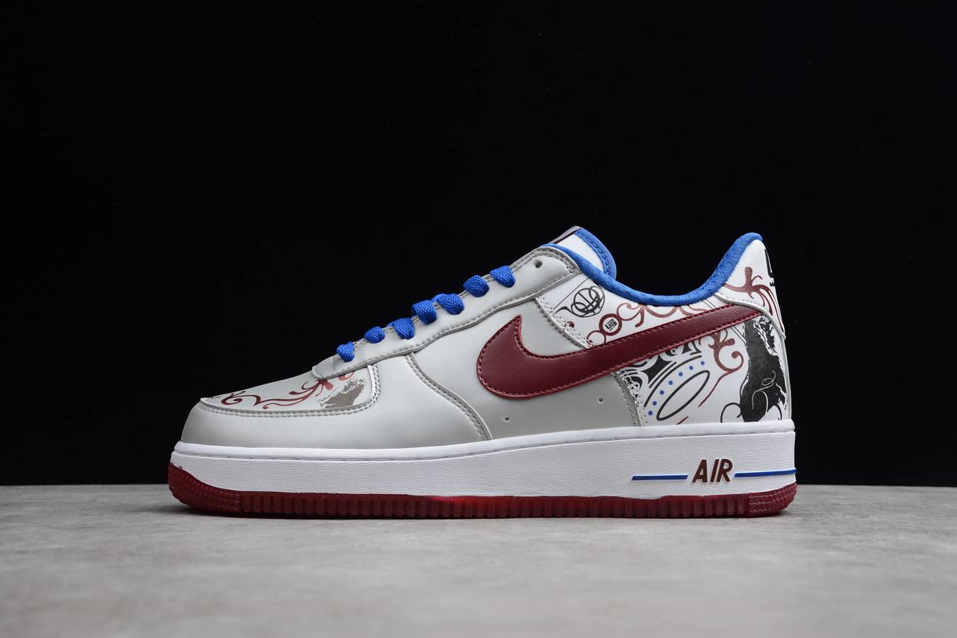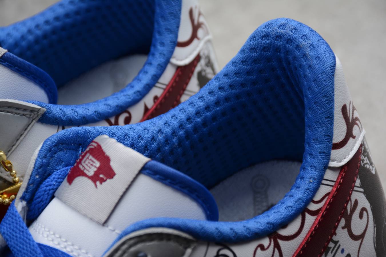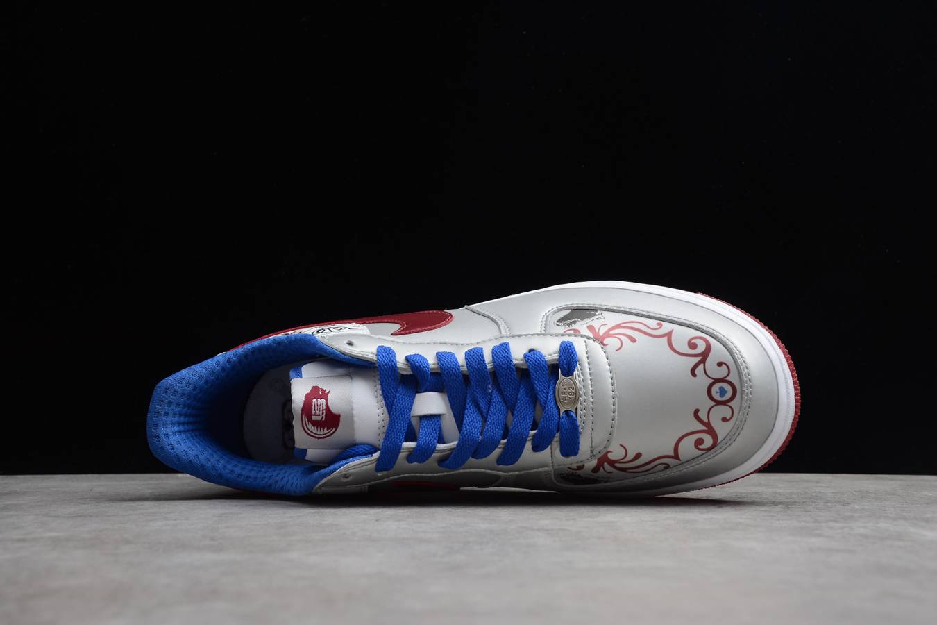 Низкая версия первых Форсов, оформленных в честь Леброна Джеймса. Металлический цвет основы, синие шнурки и внутренняя ткань, а низ подошвы и Свуш - бордового цвета.- Цвета: Metallic Silver/Team Red-Varsite Royal-White