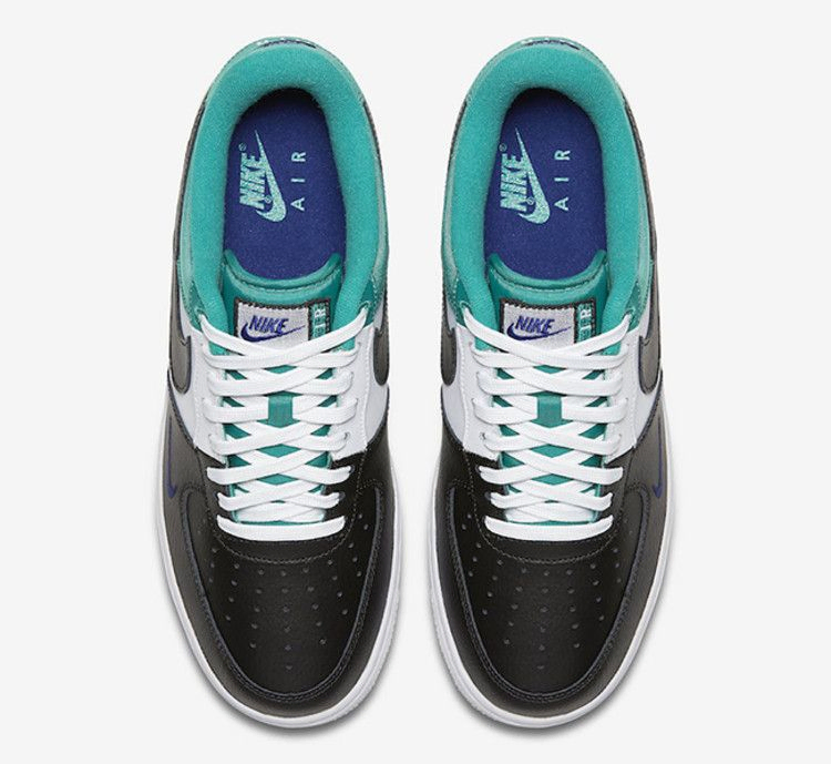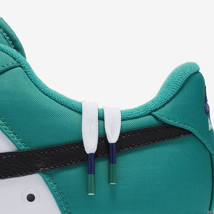 В этих Air Force 1 Mini Swoosh проявилась любовь Nike к уменьшенному брендингу. Верхняя часть кроссовок выполнена в сочетании черного, белого и бирюзового цветов с миниатюрными деталями Swoosh в области носка в цвете Deep Royal Blue. Дополнительные вентиляционные отверстия расположены на боковых панелях с латеральной и медиальной сторон для дополнительной воздухопроницаемости.
