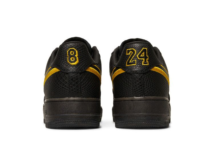 Модель Nike Air Force 1 Low Premium iD "Black Mamba" посвящена выходу на пенсию обоих номеров Коби Брайанта - 8 и 24. Низкая модель выполнена в полностью черном цвете и отличается фактурой змеиной кожи мамбы на кожаном верхе. Специальные штрихи включают в себя золотистые тени Swoosh, надписи "8" и "24" на пятке каждого кроссовка и восемь звезд на язычке, которые вместе равны общему количеству чемпионских титулов Lakers на момент выхода Брайанта из команды.
