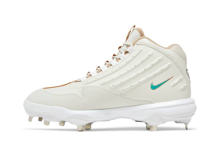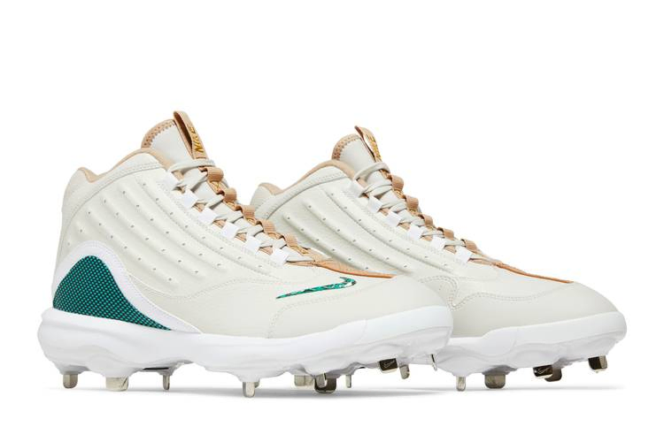 Nike Griffey 2 Cleat '2023 All-Star Game' возвращает вторую фирменную обувь Кена Гриффи-младшего в честь Midsummer Classic. Ретро-силуэт, переделанный под игровые бутсы, имеет кожаный верх цвета слоновой кости с фирменной ребристой отделкой по всей боковой панели. Контрастные тиловые акценты расставлены на мини-брендинге Swoosh и усиленной накладке вдоль боковой пятки. Логотип Junior's Swingman украшает заднюю часть пятки. Подошва с шипами обеспечивает сцепление с грунтовыми дорожками и газоном.