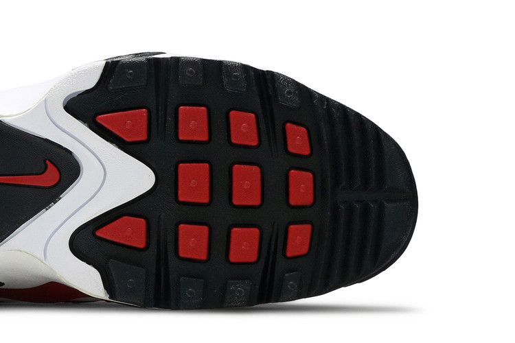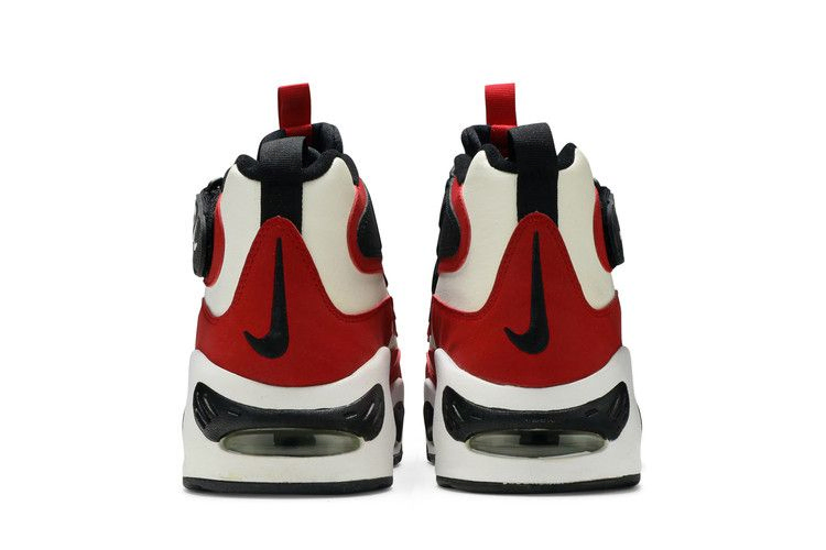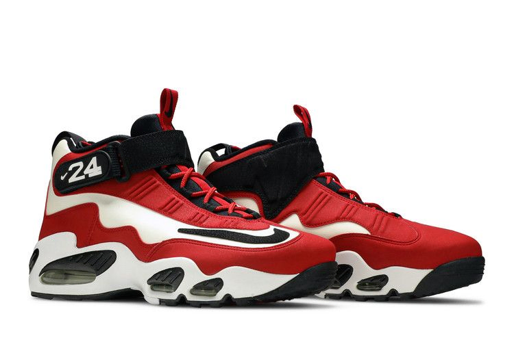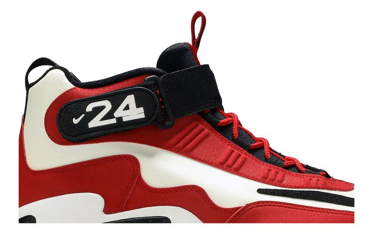 Изначально выпущенные в 1996 году, эти обновленные в 2009 году Air Griffey Max 1 имеют синтетический верх в белом и красном цветах, а частично раскрытый блок Air находится в промежуточной подошве, обеспечивая эффективную амортизацию. Цифра 24 на ремешке на щиколотке - это отсылка к номеру Кена Гриффи во время его выступлений за команду Seattle Mariners.
