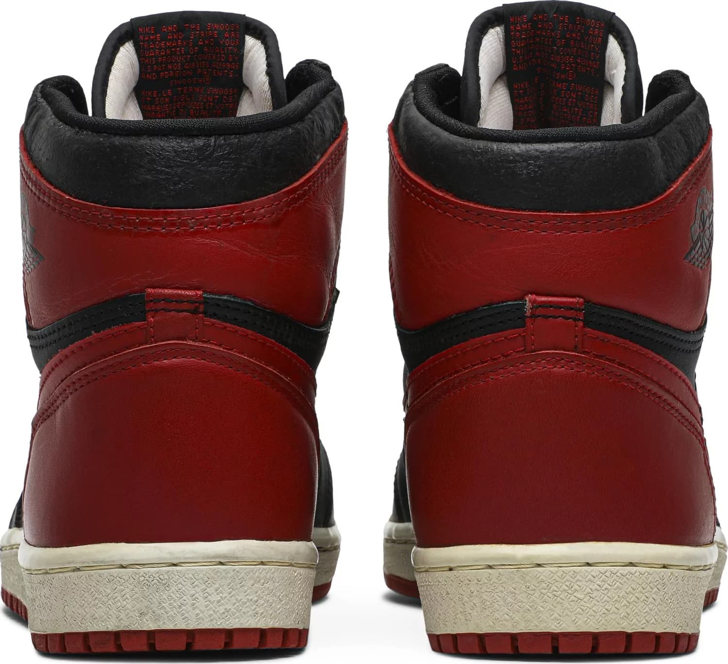 Эта расцветка "Bred" была первоначально выпущена в апреле 1985 года во время первого сезона Майкла Джордана в команде "Чикаго Буллз" и вскоре стала центром культовой маркетинговой кампании Nike "Banned". Хотя в действительности это не привело к штрафу в размере $5,000 за игру, черно-красная расцветка стала культовой. В белой промежуточной подошве находится амортизирующий материал Nike Air, эта расцветка навсегда стала синонимом MJ и Чикаго.