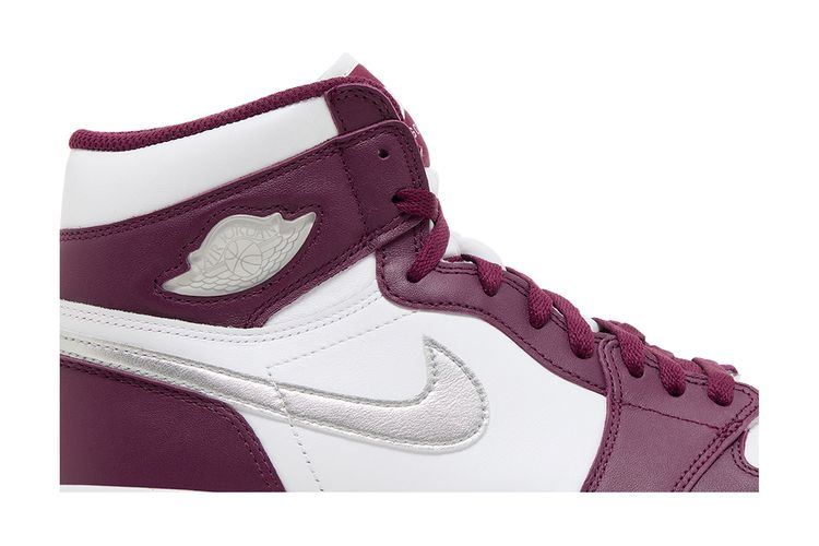 Модель Air Jordan 1 High Golf "Bordeaux" выполнена из водонепроницаемой кожи, на белой основе с бордовыми накладками на носочной и пяточной частях. Помимо тканого Jumpman на язычке, верхняя часть кроссовок украшена серебристым металлическим логотипом Swoosh и подобранным по цвету логотипом Wings на боковой крышке лодыжки. Кроссовки опираются на белую резиновую подошву с амортизацией Air-sole в пятке. Бордовая резиновая подошва с круговым вращением передней части стопы и интегрированным рисунком сцепления с поверхностью.