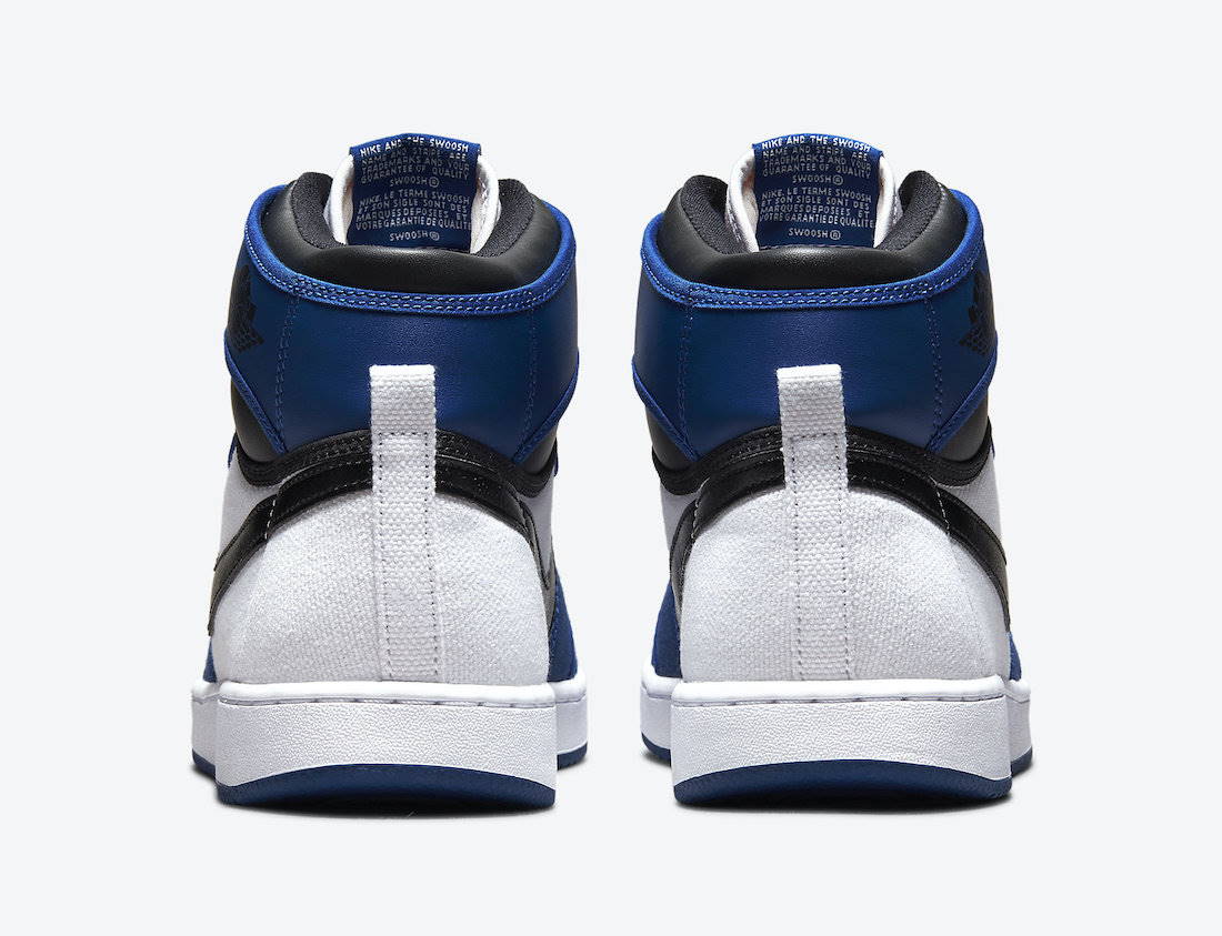 Air Jordan 1 KO 'Storm Blue' имеет классическую цветовую схему на ретро-силуэте '86, смоделированную по образцу дебютной фирменной обуви MJ. Дышащий верх из канваса выполнен на чистой белой основе с контрастными темно-синими накладками и черным кожаным Swoosh. Соответствующие черные акценты приземляются на воротник, шнурки и логотип AJKO, отпечатанный на боковой лодыжке. Тканая бирка Nike украшает слегка мягкий язычок. Кроссовки установлены на двухцветной резиновой подошве, позаимствованной у Nike Vandal.- Цвета: Storm Blue/White/Black
